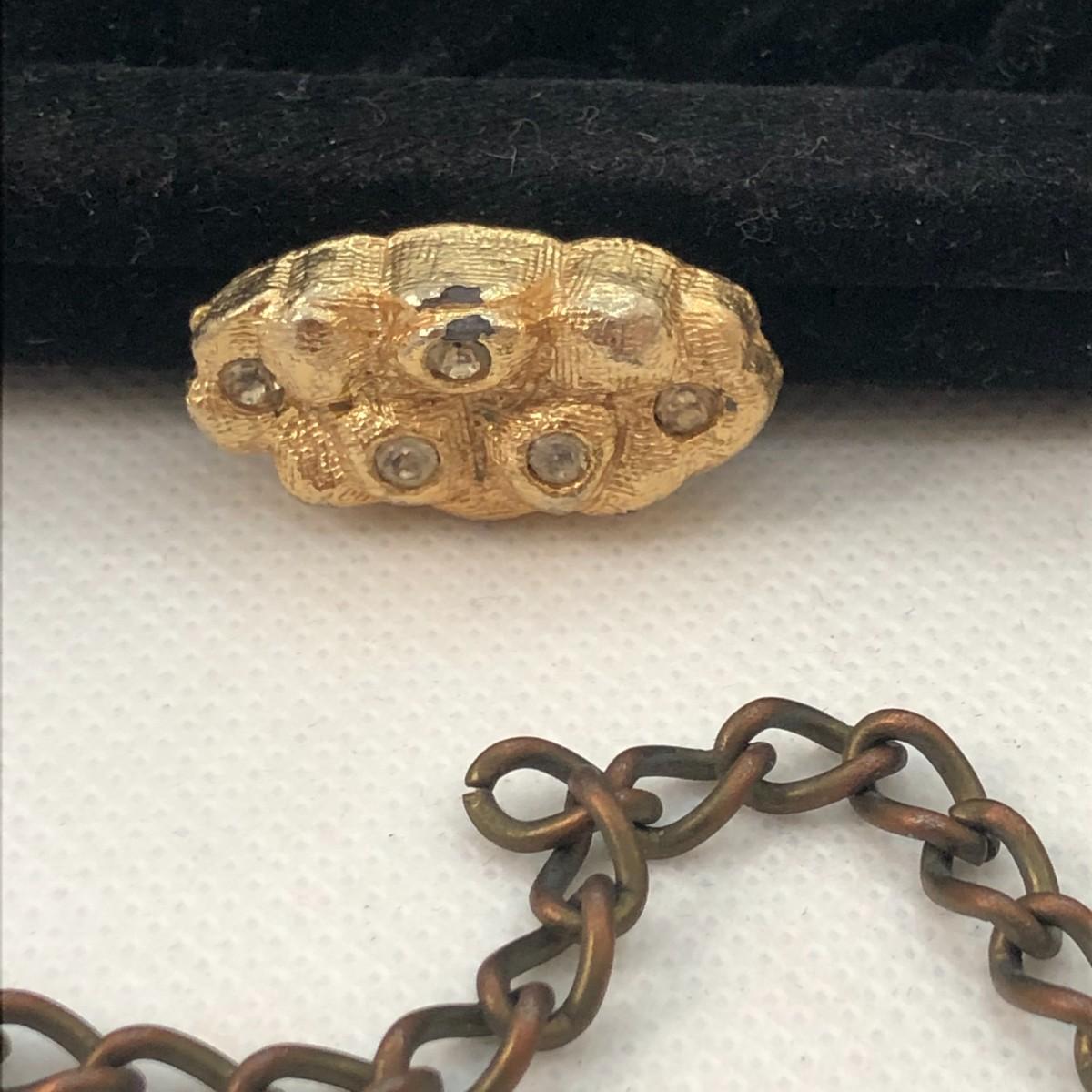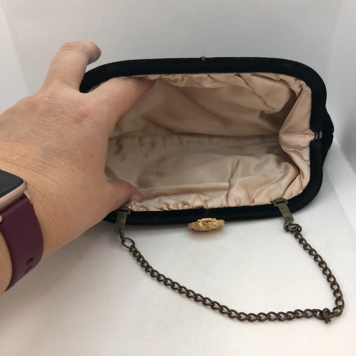 There are rhinestone accents in the clasp and the purse is about 10.5" wide. Great condition.