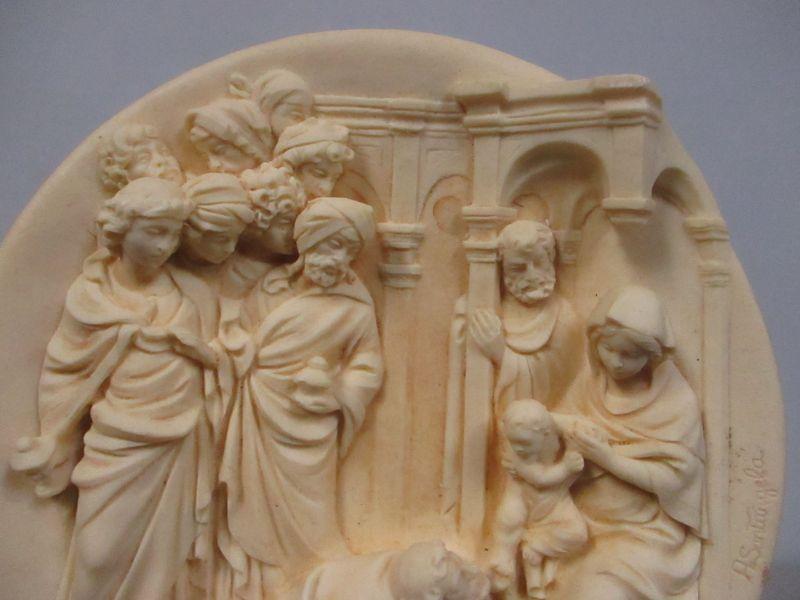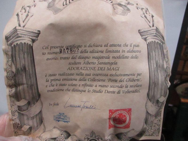 Studio Dante Di Volteradici "ERATO" Ivory Alabaster Collector Plate and Ivory Color L'Adorazione Dei Magi PLATE Sculpture Sculpture Adoration of Magi