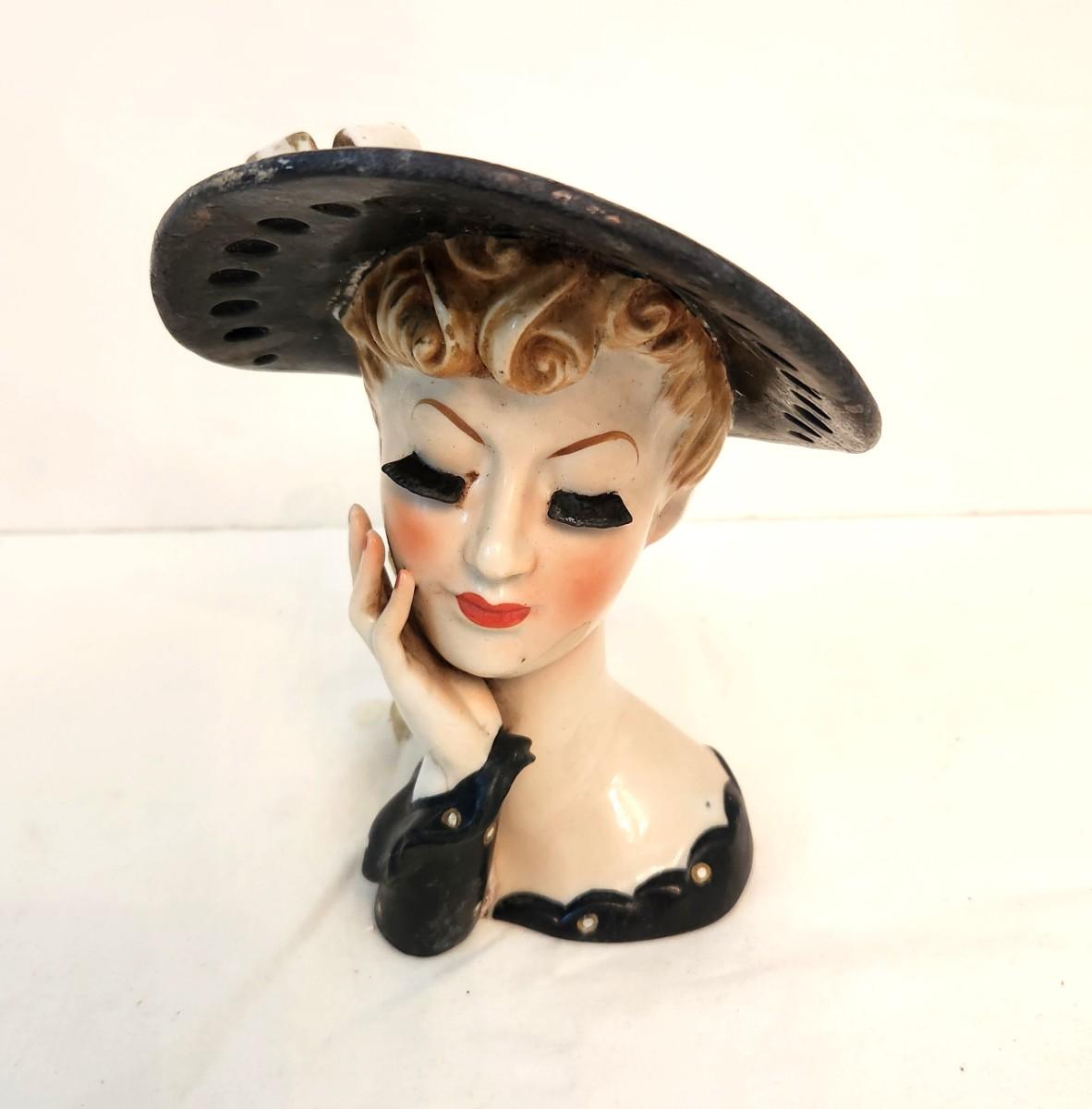 Vintage Lady head vase - 1950's, Stock # on bottom reads S348B. This model is rather scarce. Good vintage condition. 6.5" tall.
