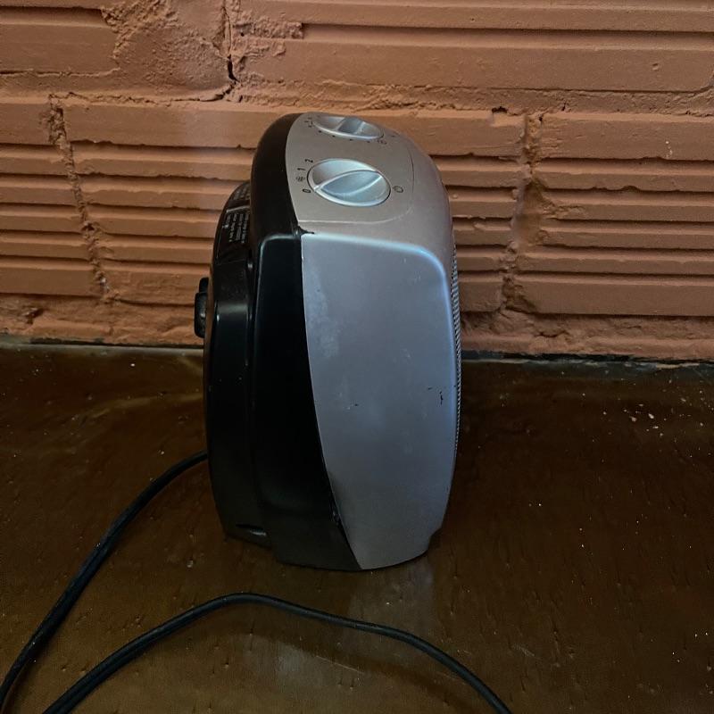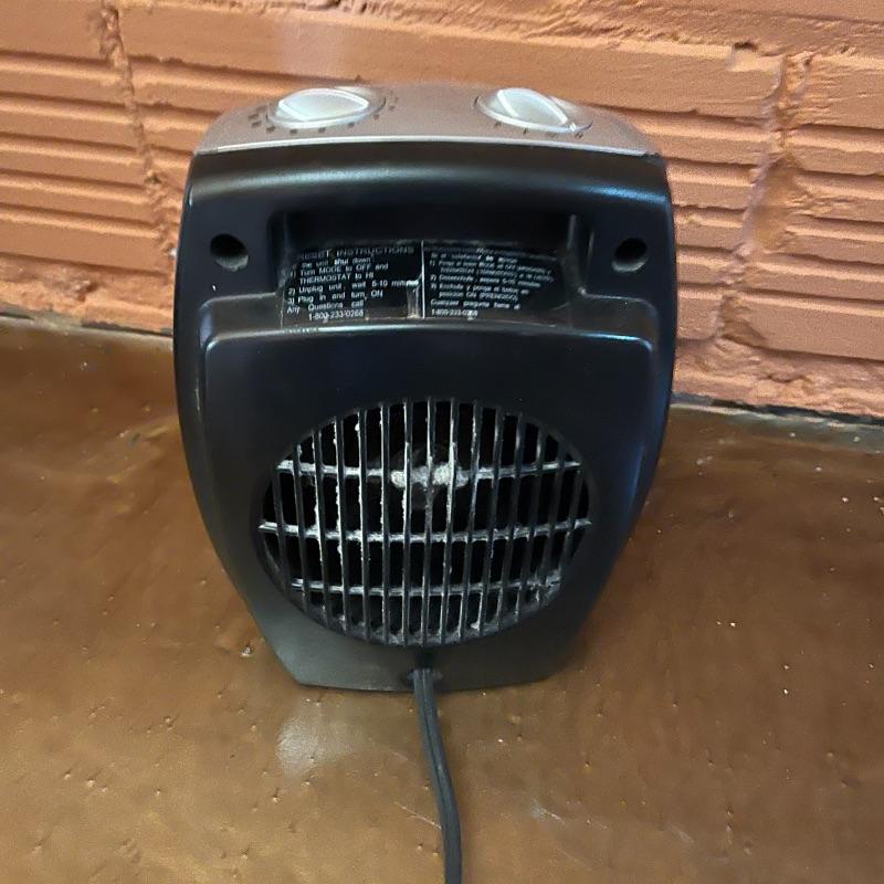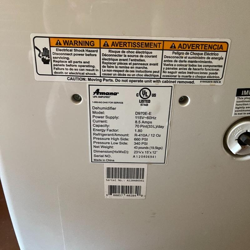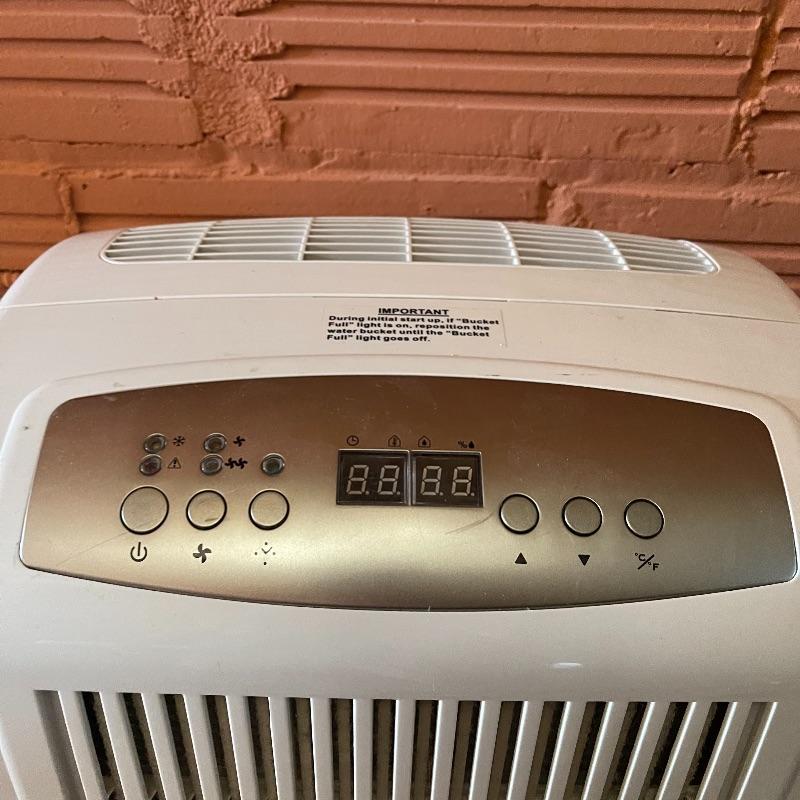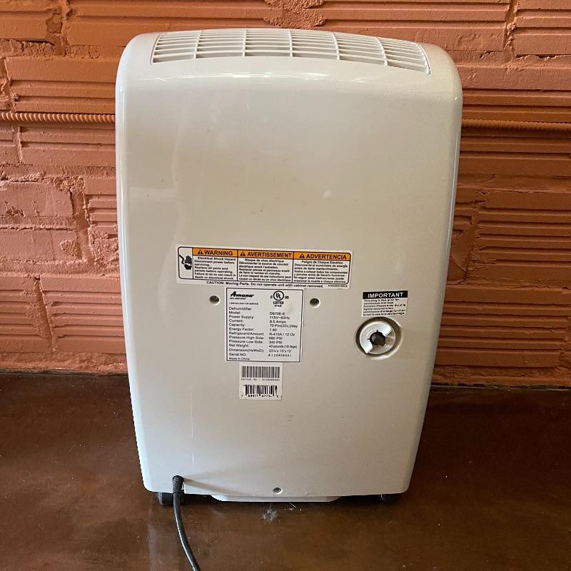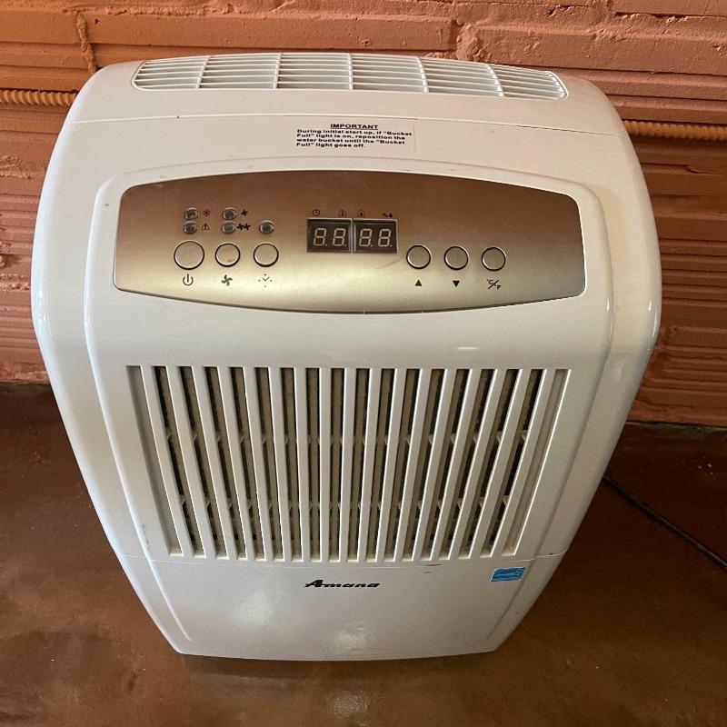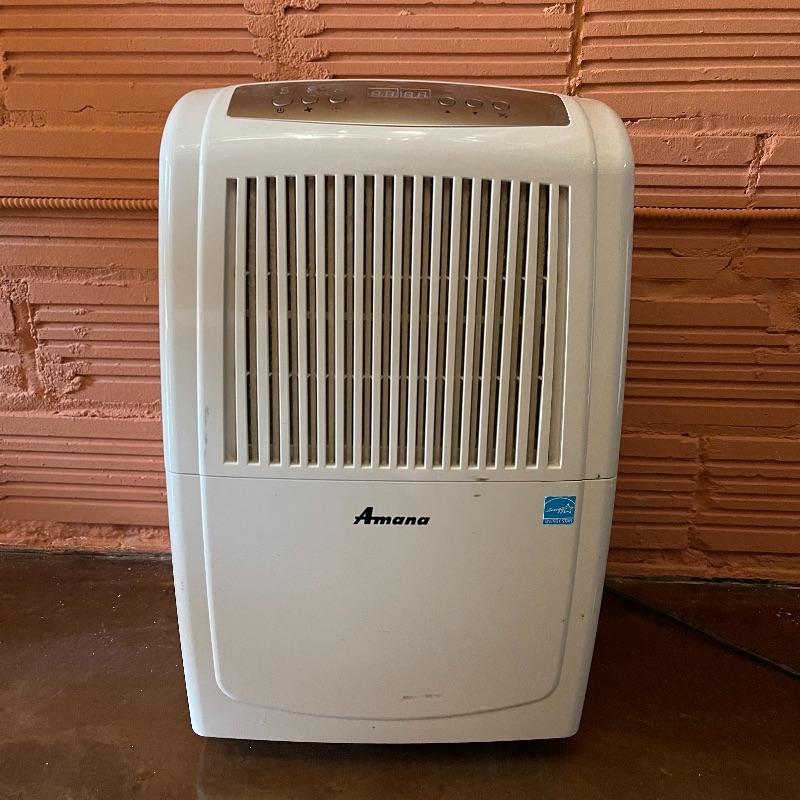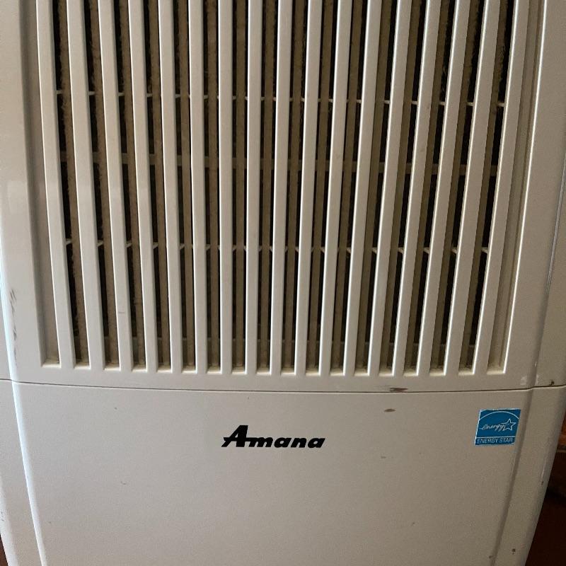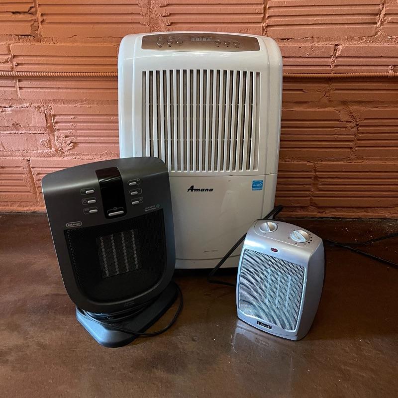 Dehumidifier and two space heaters. The dehumidifier model number is D970E-E by Amana. One of the space heaters is by DeLonghi and it oscillates, the other is by Lasko.