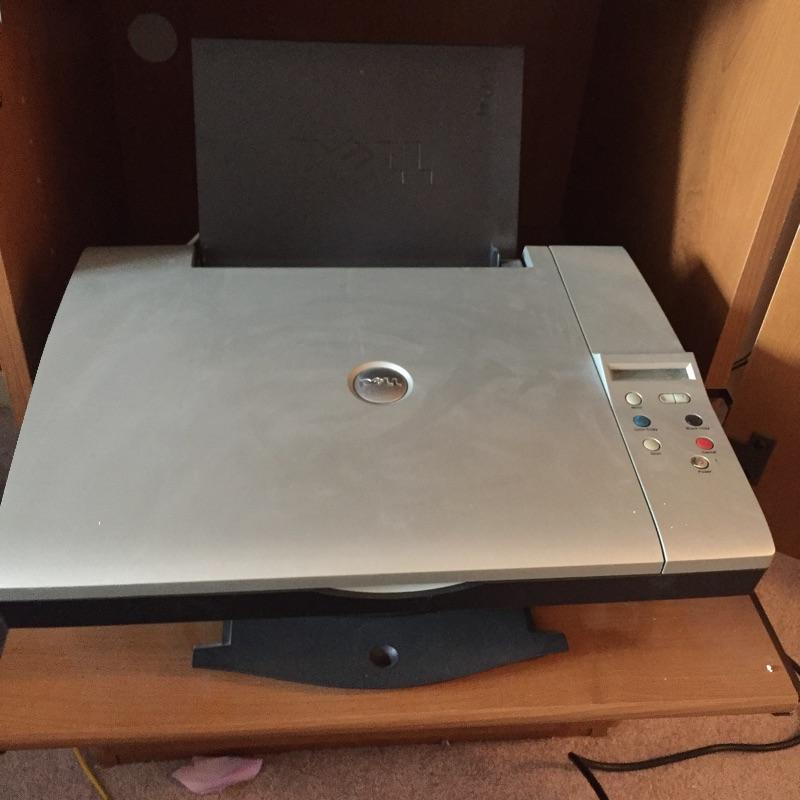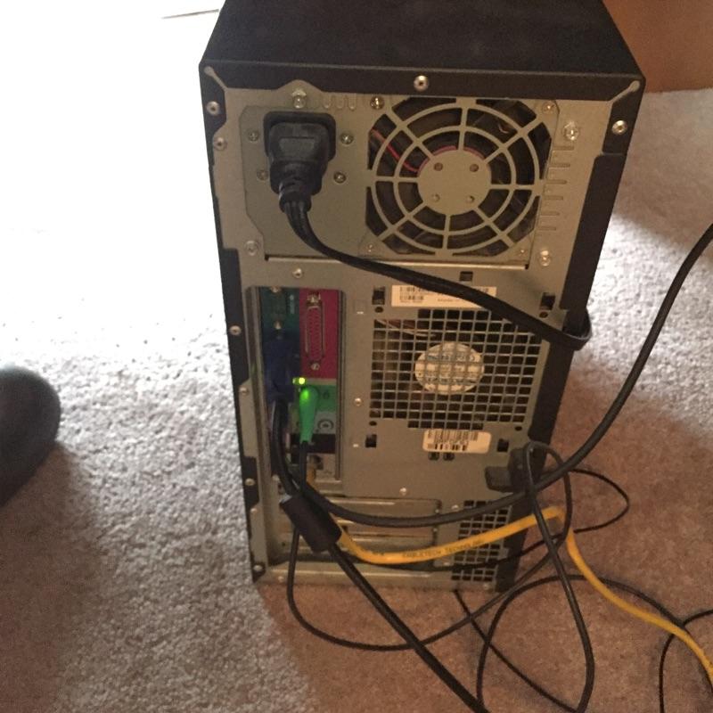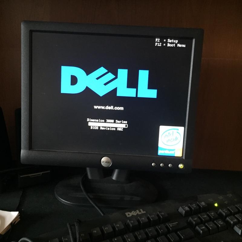 Dell Dimenson 3000 computer with 15” monitor keyboard , speakers, mouse, printer and power pack. Also includes a heavy duty back up power cord. The hard drive has been removed from desktop. Desk not included but is available in lot 143.