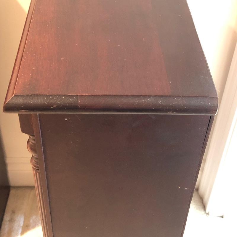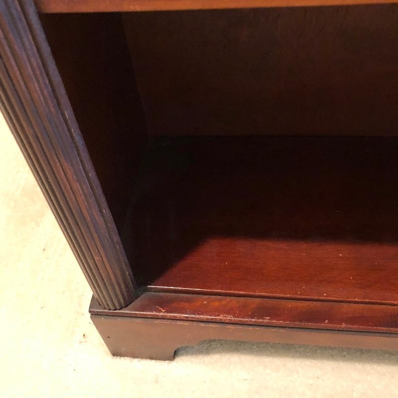 Two wooden matching bookshelves. Nice detail on edges make them great for a library. Small scuffs in edges normal wear. Each one measures 21” x 9.5” x 36” tall. No shipping.