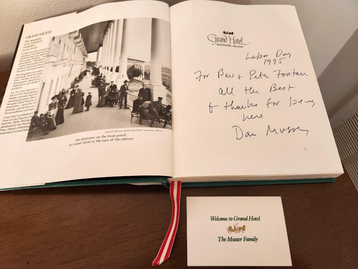 Book about the history of the Grand Hotel at Mackinac island - 100th Anniversary Edition - Inscribed to Pete and Bev by the Hotel Owner, dated Labor Day 1995.