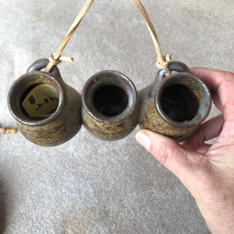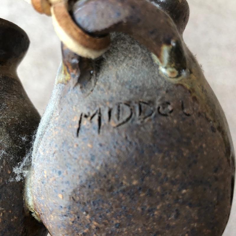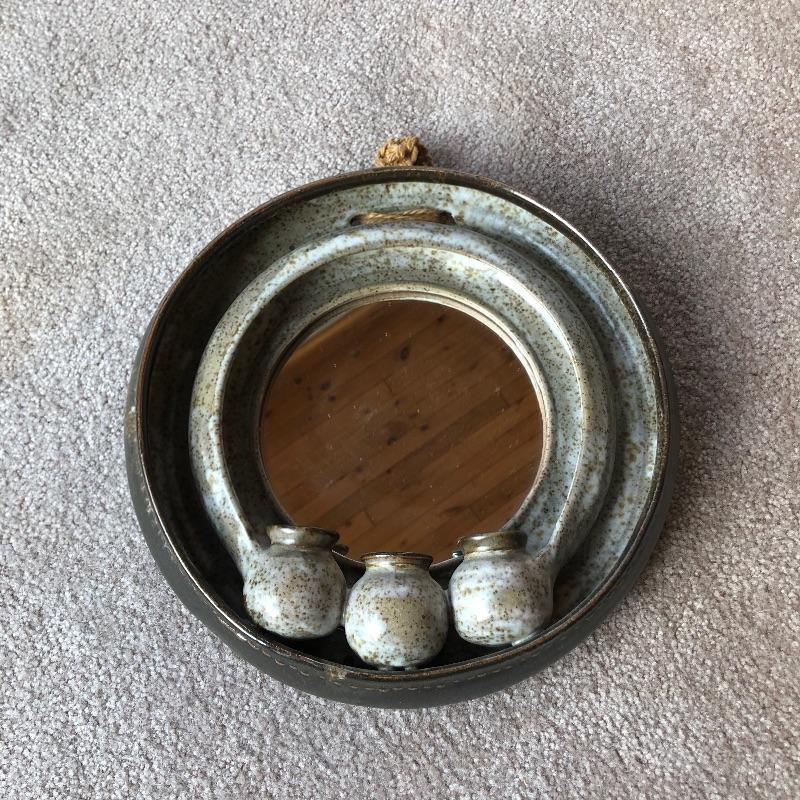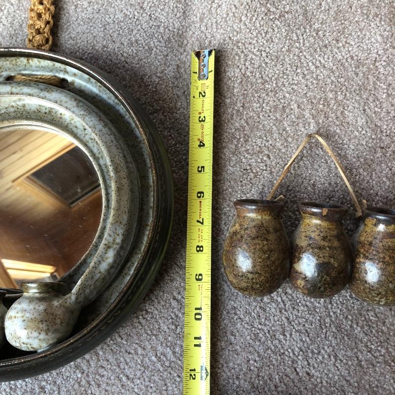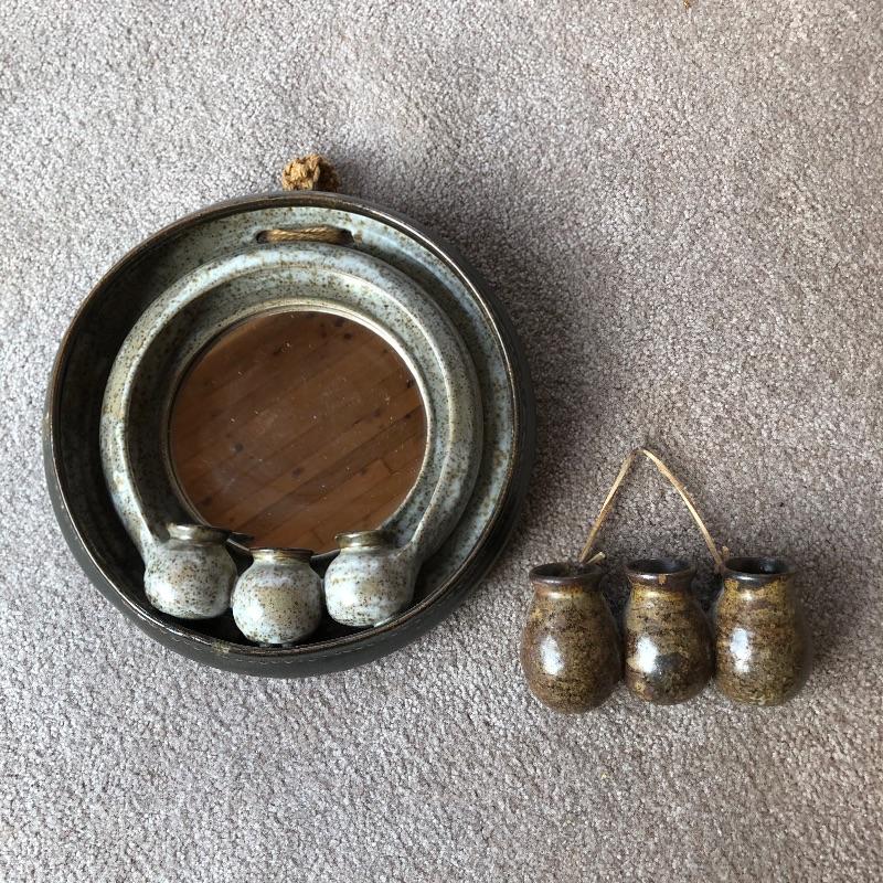 Don’t miss out on this Jack Midour Pottery. Lot includes signed Midour piece with mirror and three jugs and a smaller signed piece of three jugs.