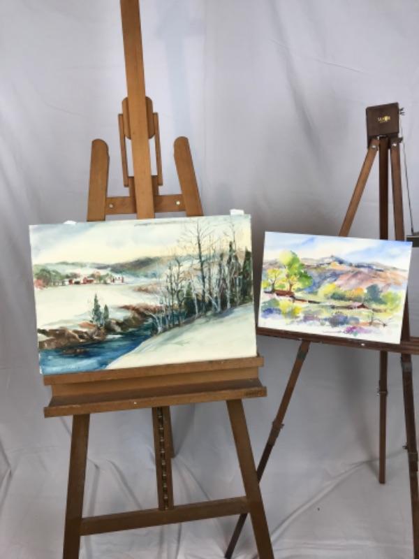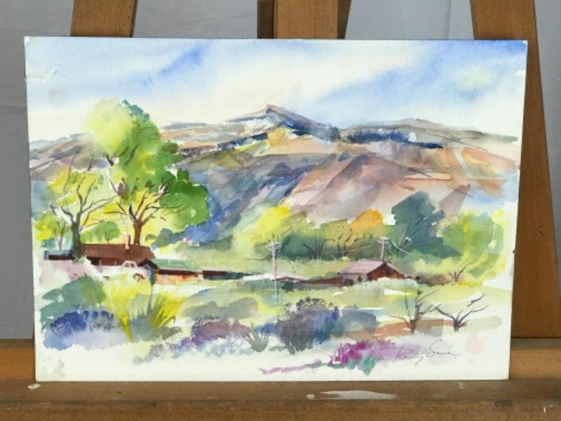 Pair of Jean Ranney Smith signed original watercolor paintings “Mountain Homestead “ measures 22”x15”. “Mountain Scenery” measures 14”x10”