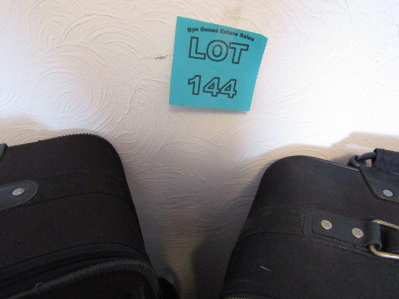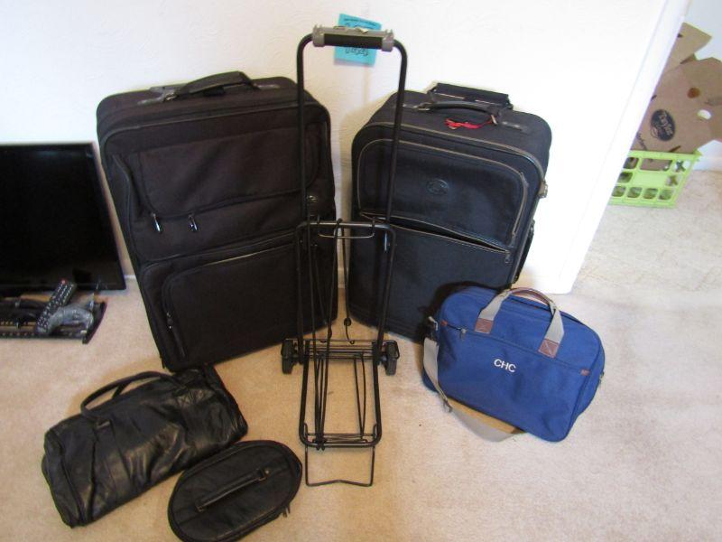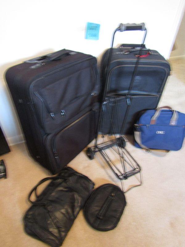 LUGGAGE CART, 2 SUITCASES WITH PULL HANDLE, DUFFLE BAGS & SHAVING BAG