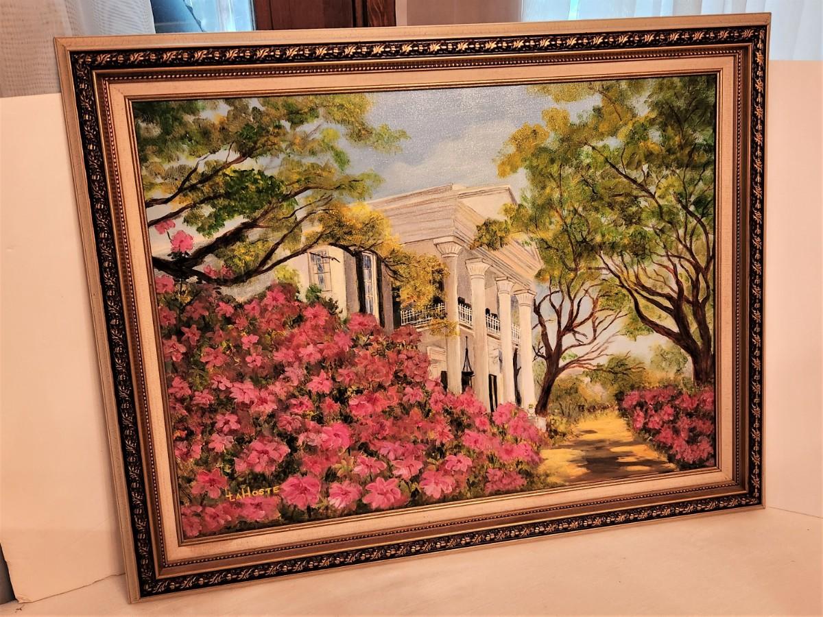Original acyrilic painting on canvas - "Stanton Hall, Natchez". Framed - 28" across, 22" tall, good condition.