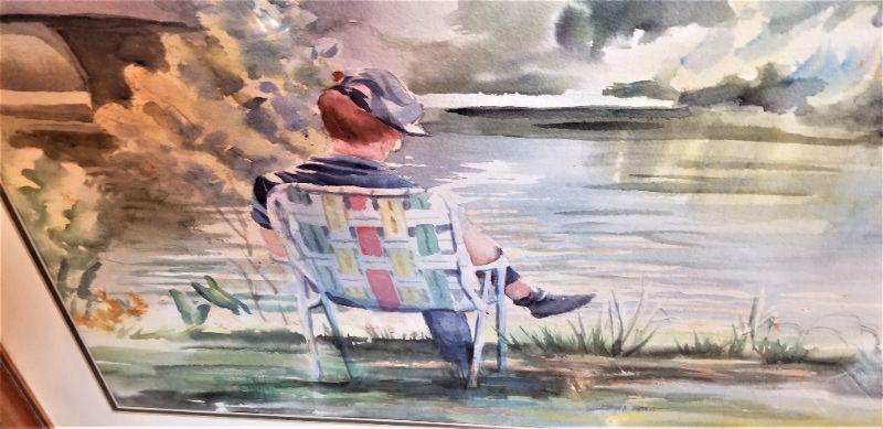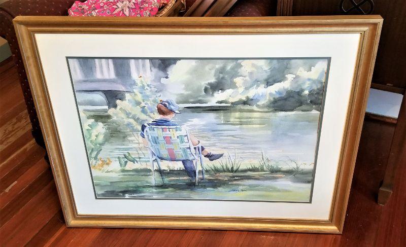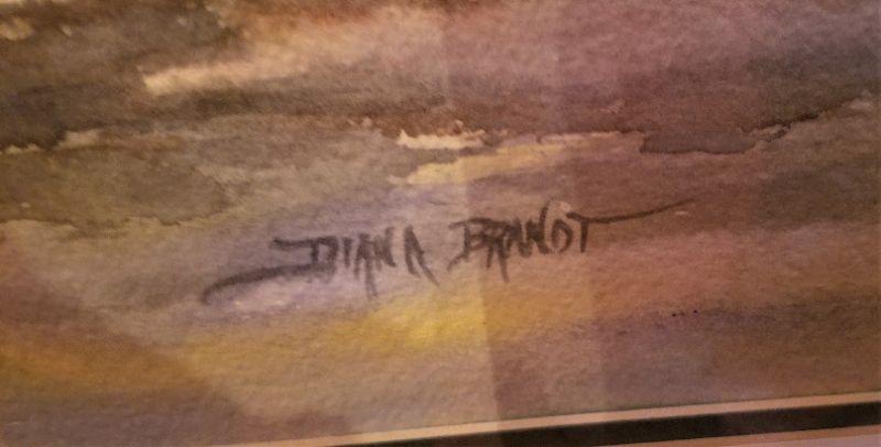 Well executed original watercolor in frame - "Summer Day" by local artist Diana Brandt. Measures 35.5" x 28" Good condition.