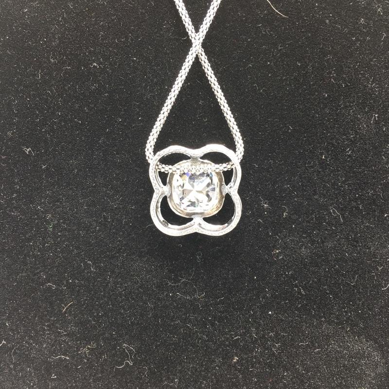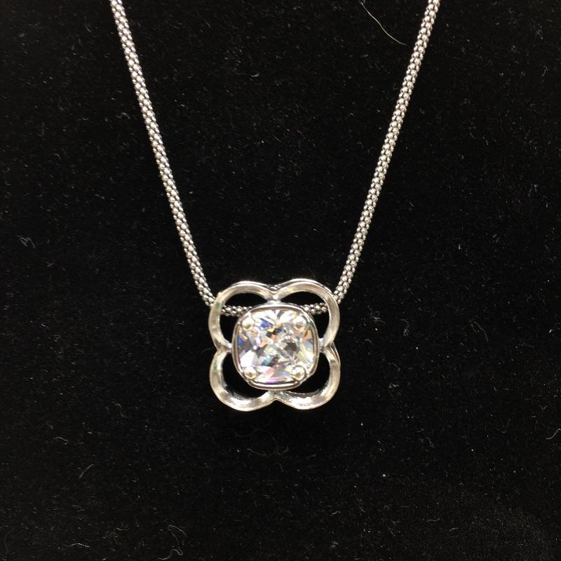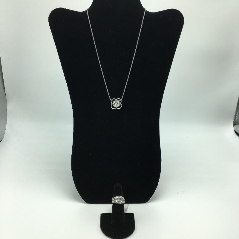 Silpada sterling Silver and cubic zirconia ring and a sterling silver necklace with a sterling silver and cubic zirconia flower pendant that measures 17” long.