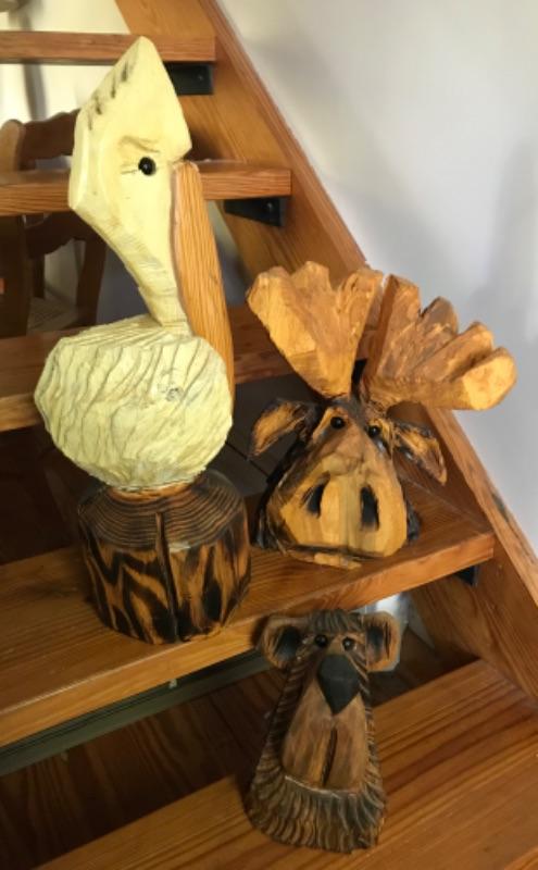 Signed (see pictures) Pelican number 5411 21-1/2” tall, Moose number 6058 12” tall and Bear number 5306 8” tall