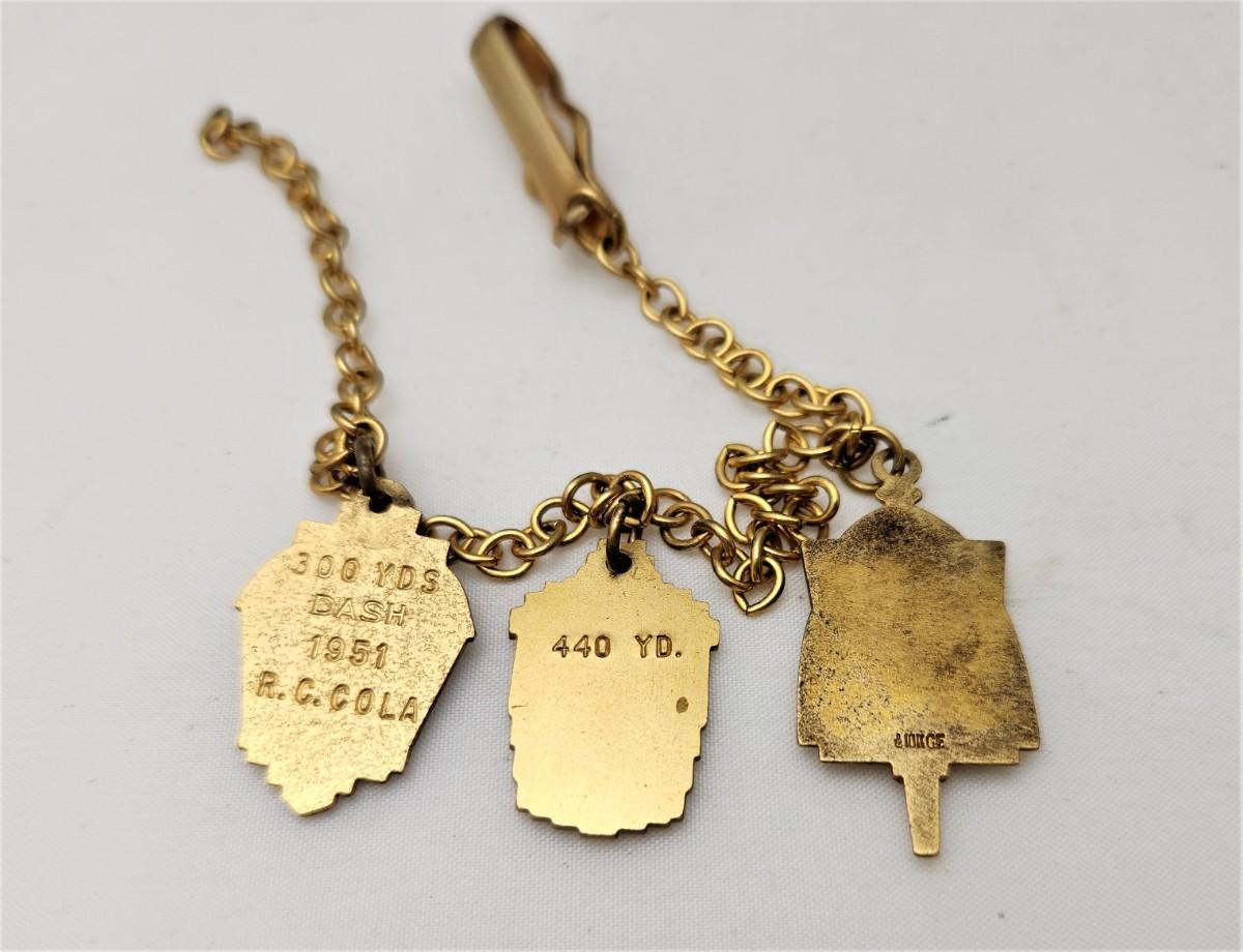 Three vintage award fobs from St. Aloysius High School (New Orleans) - 440 Yard Dash, 300 yard dash (dated 1951), and Honor Student. All in good vintage condition.