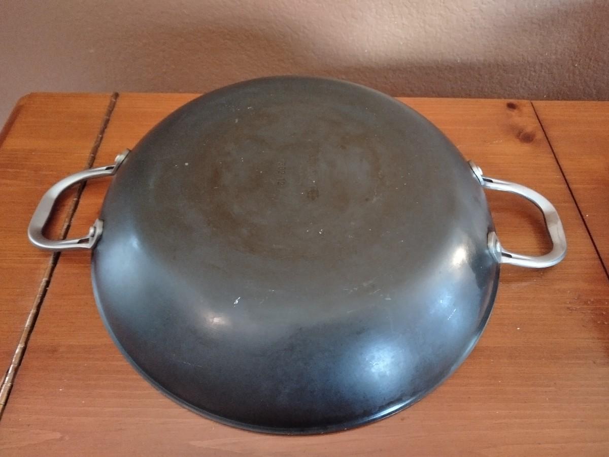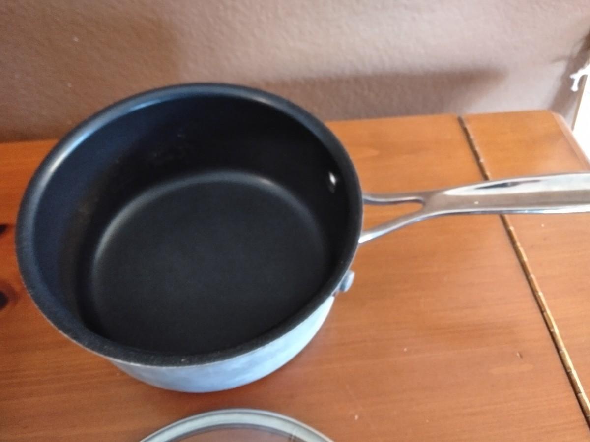 LOT 144 TWO SAUCE POTS & CALPHALON 12" SKILLET