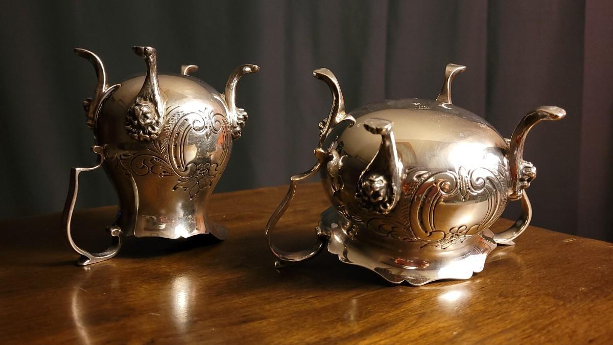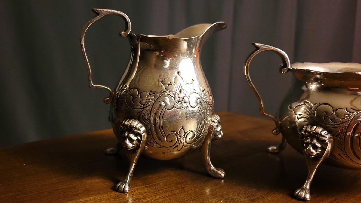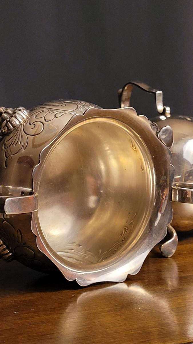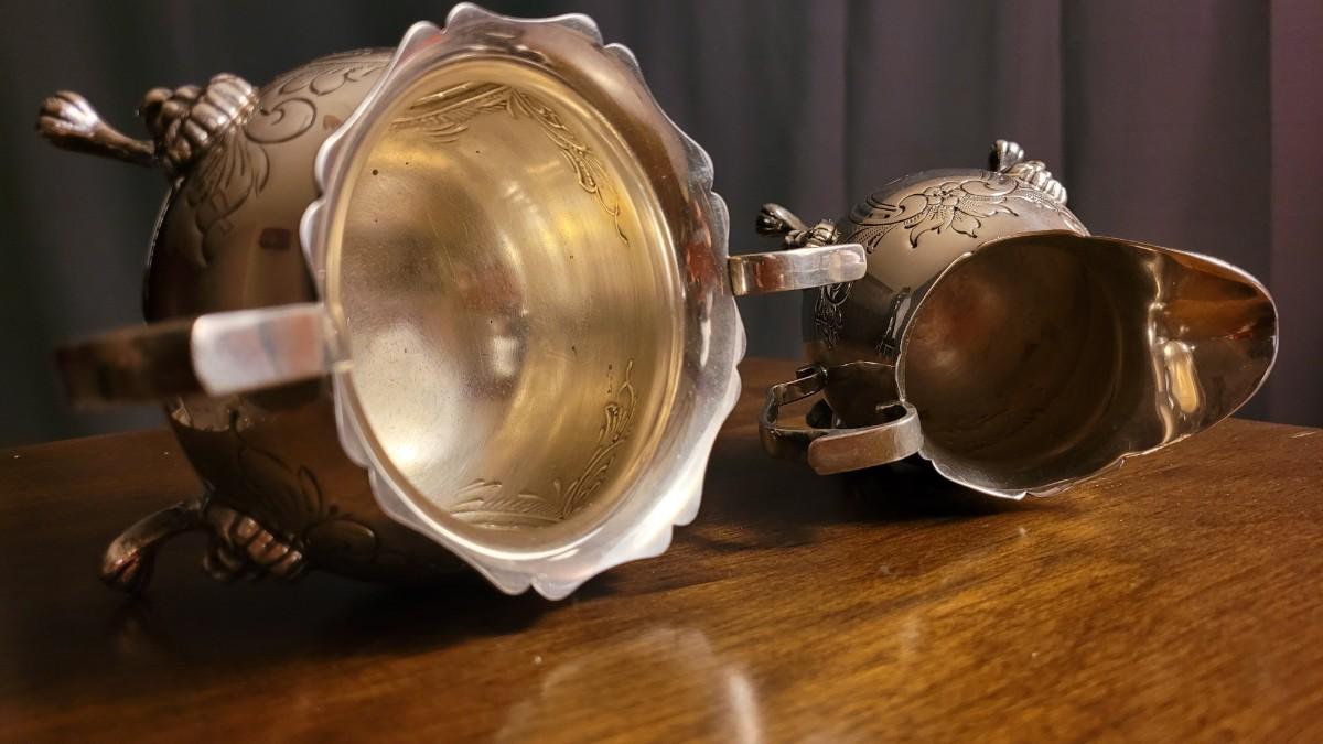Lot 144: (2) Vintage Lion Feet Accent Silver Plated Hand Chased Sugar and Creamer Set