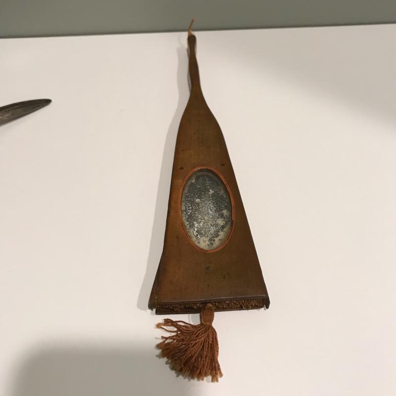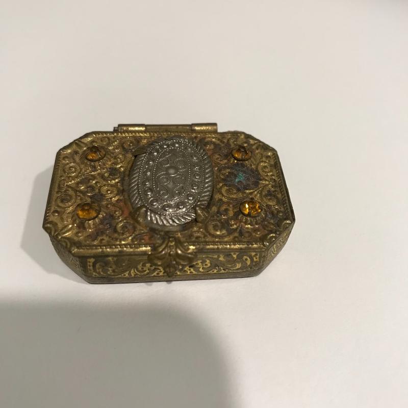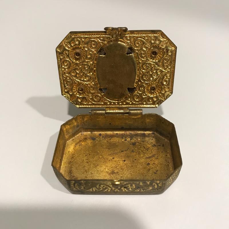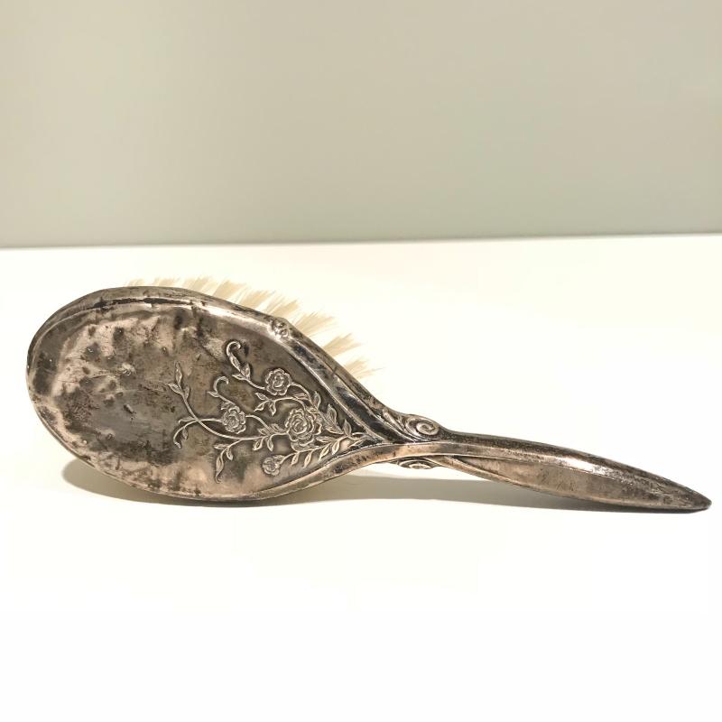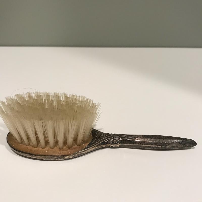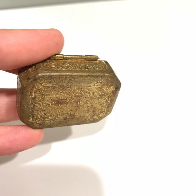 Large vanity lot includes a fantastic vintage fan that pulls out to open. Small tear on bottom. Lot also includes Sterling brush handle, mirrors, pill and powder boxes, an Estée Lauder powder compact with manufacturer’s texture print still in powder, delicate doily tray and more! Swivel mirror is approx 12.25” tall. Shipping available or local pick up in Arden, NC.