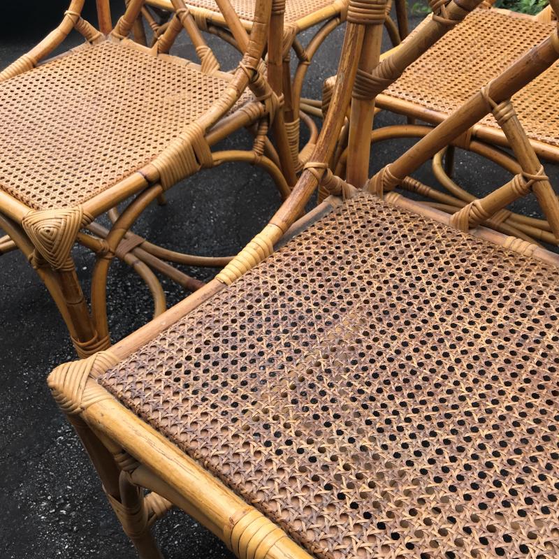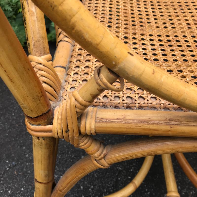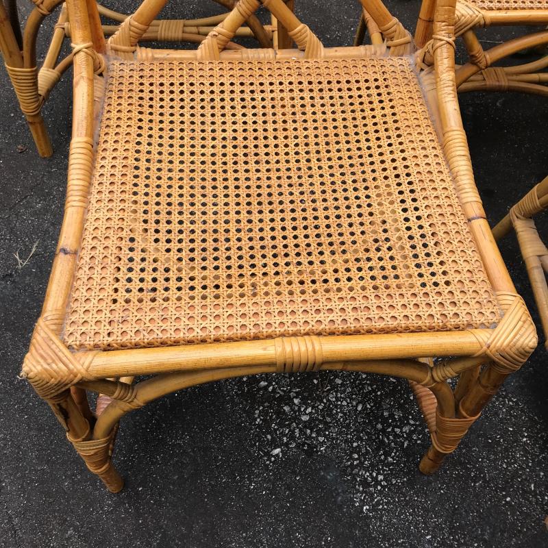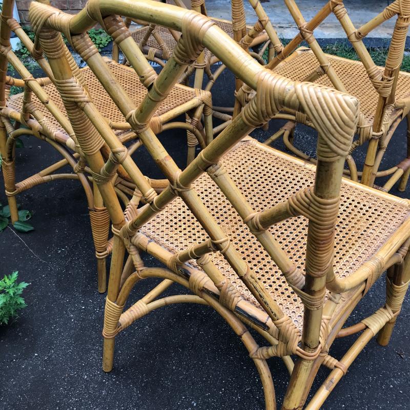 Gorgeous sturdy bamboo chairs in excellent condition. Only one small unravel found (see photos) One Chair’s Seat is a little darker that the rest. No shipping. Local pick up only.