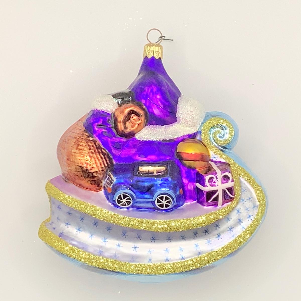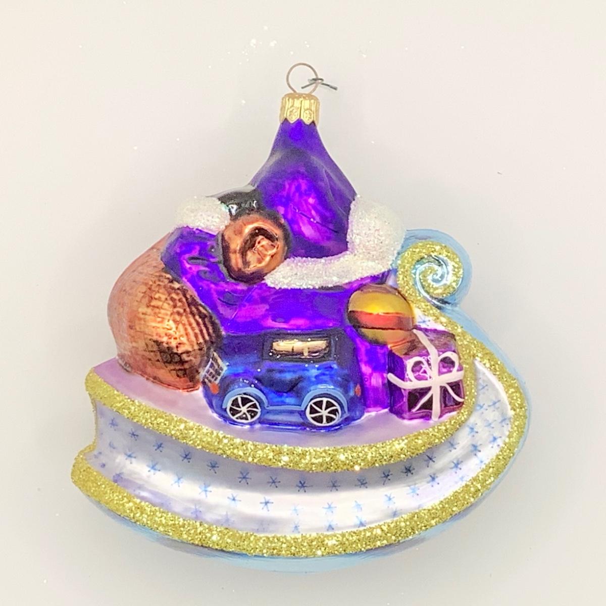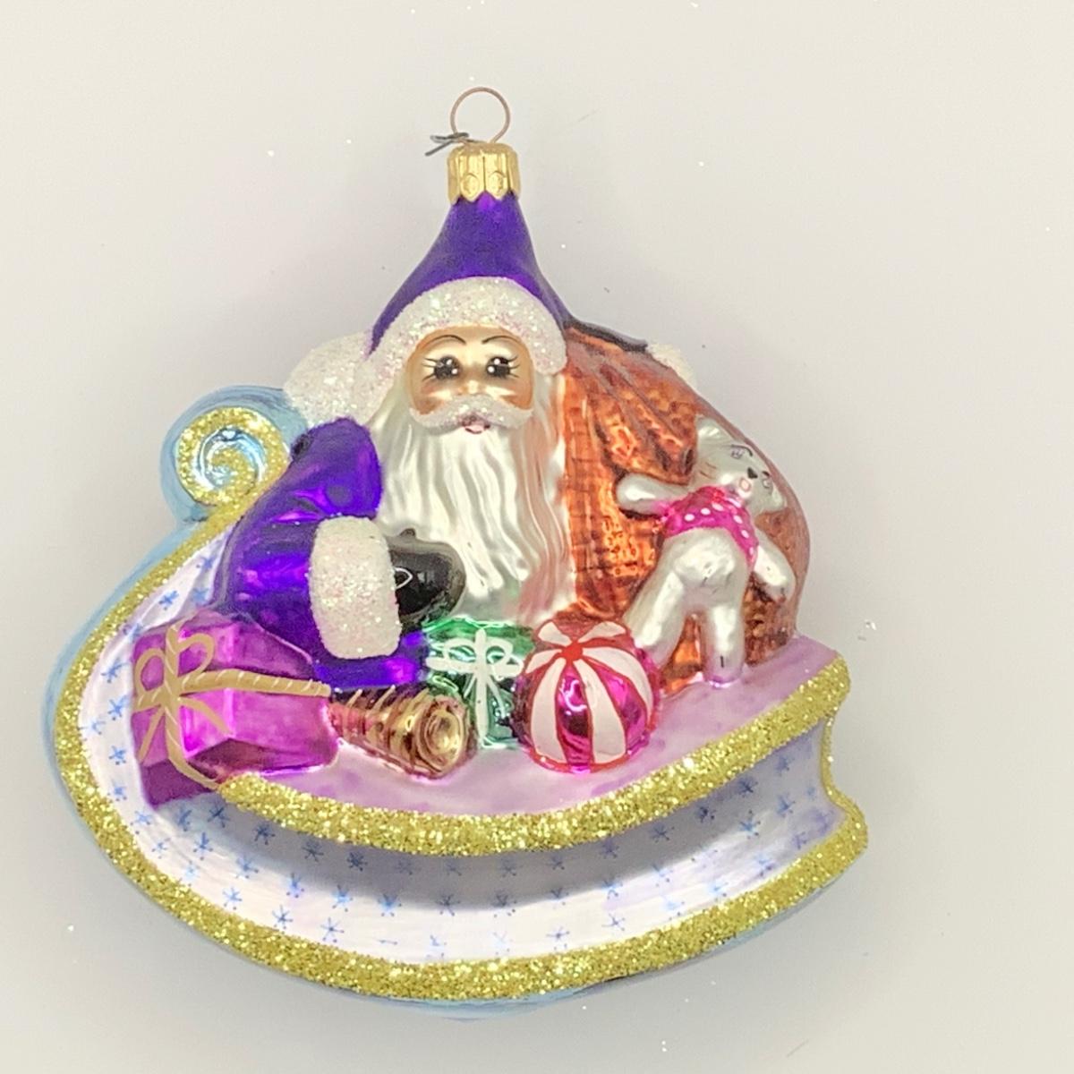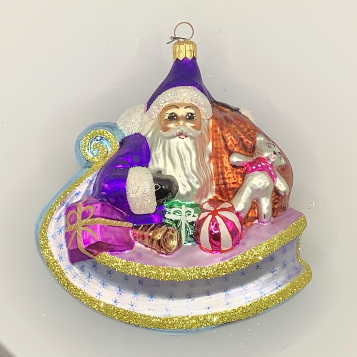 Lot 1446 Vintage Christopher Radko Glass Ornament, 1995 Santa and Sleigh ( purple )
