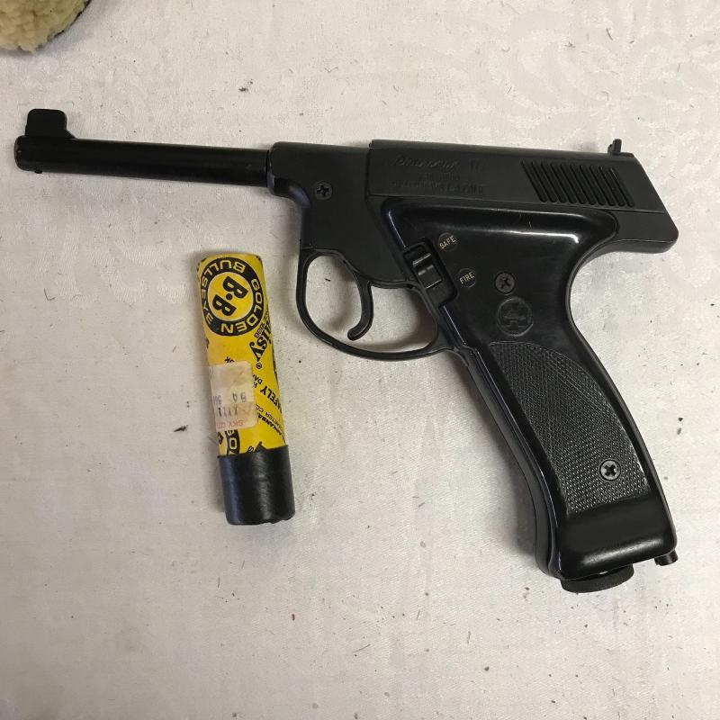 Plainsman .175 BB gun has CO2 cartridge chamber. Lot also includes a vintage LL Bean cap. Lot is available for local pickup in Asheville, NC only.