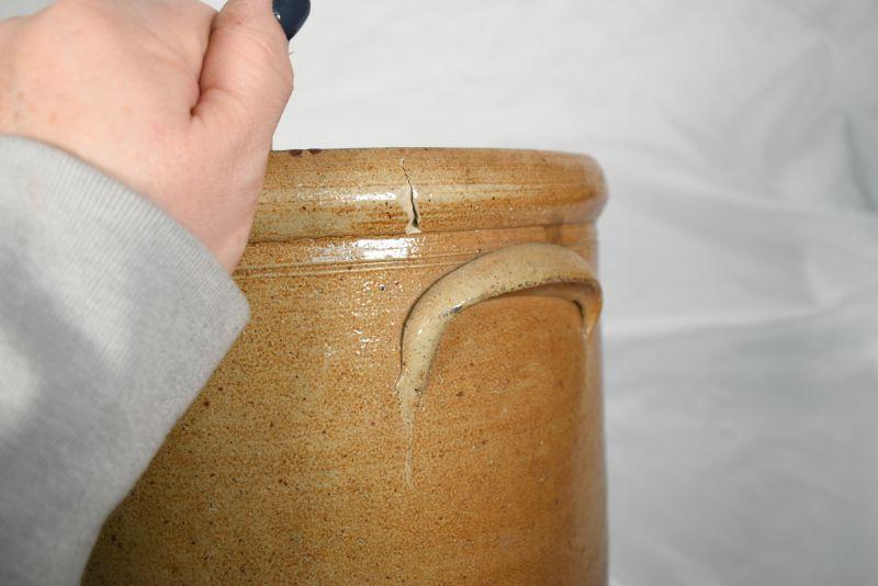 Brown glaze inside. Showing some wear and some chips.**Please read Terms and Conditions before placing a bid. Pick up is Sunday, December 22 from 11am to 3pm or Monday, December 23 from 4pm-7pm in Mantua, NJ. All sales are final. All sales are as is, where is. Please review all photos. Props are not included. Measurements are approximate.