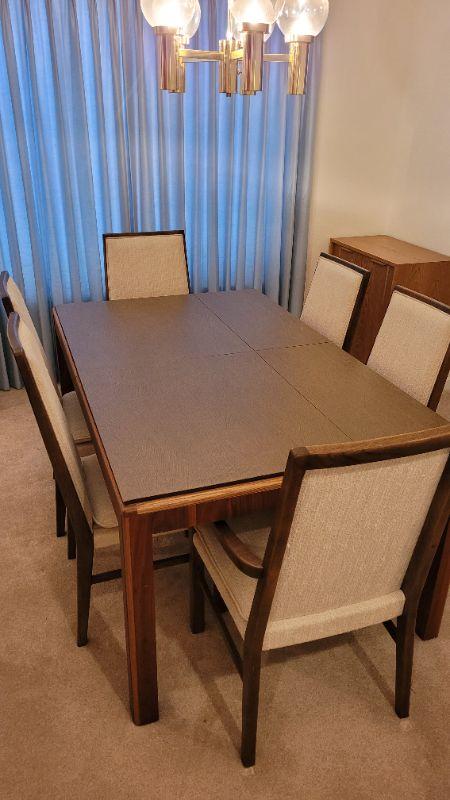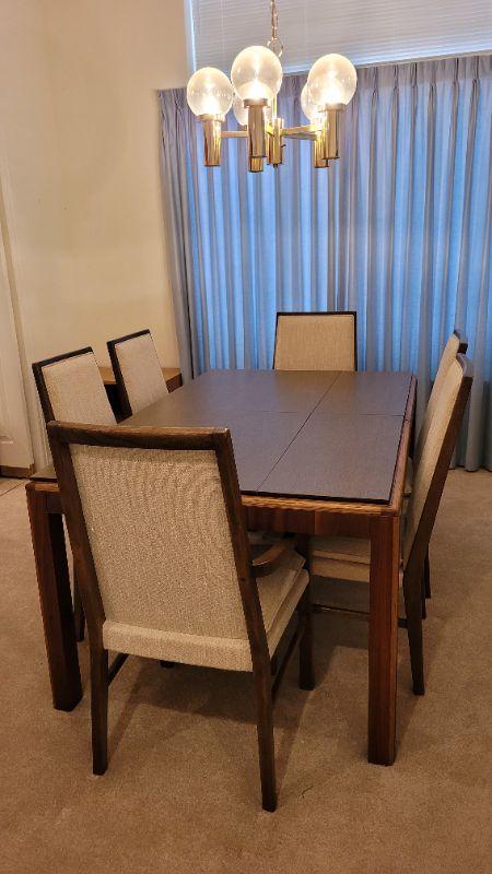 Lot 145: Vintage LANE Mid Century Modern Dining Table w/ (2) Leaves and Protection Pad