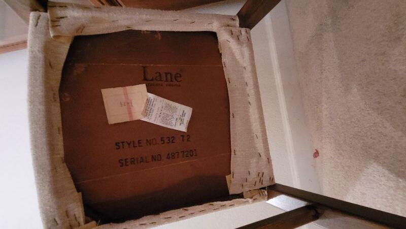 Table measures 64" x 40" x 28.5" before the addition of leaves (18" each). Outstanding condition for age and Estimated to be a 9.5 out of 10. Chairs are also LANE and Measure 39" x 24" x 17" each.