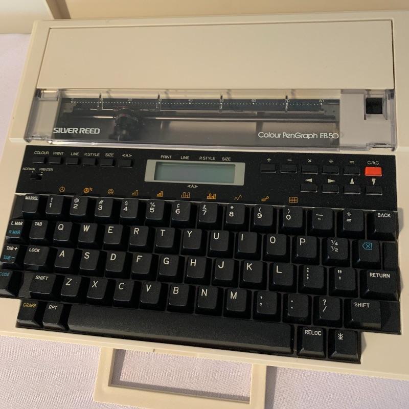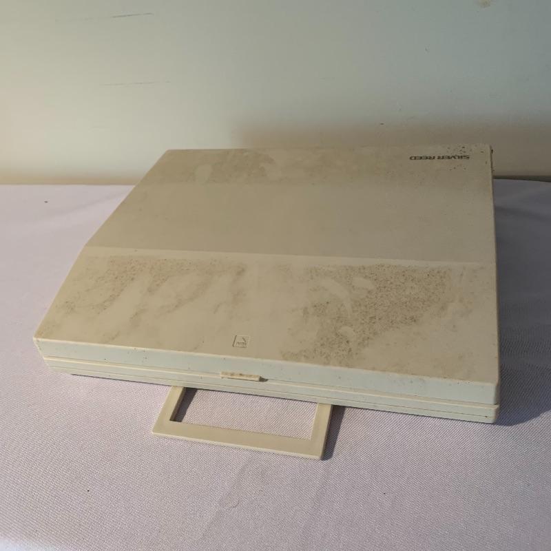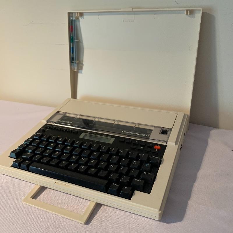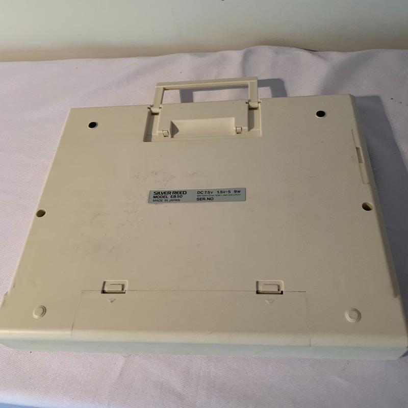 Who needs a printer when you can type out what you need anywhere? This lot includes one typewriter from Silver Reed. It has a handle and detachable lid. It measures about 11in x 12.5in. Piece was not tested, it has compartment for five D cell batteries. It also appears to have had a power cord at some point, but it is not included in lot and will need to be replaced by winning bidder if desired. Local pick up only.