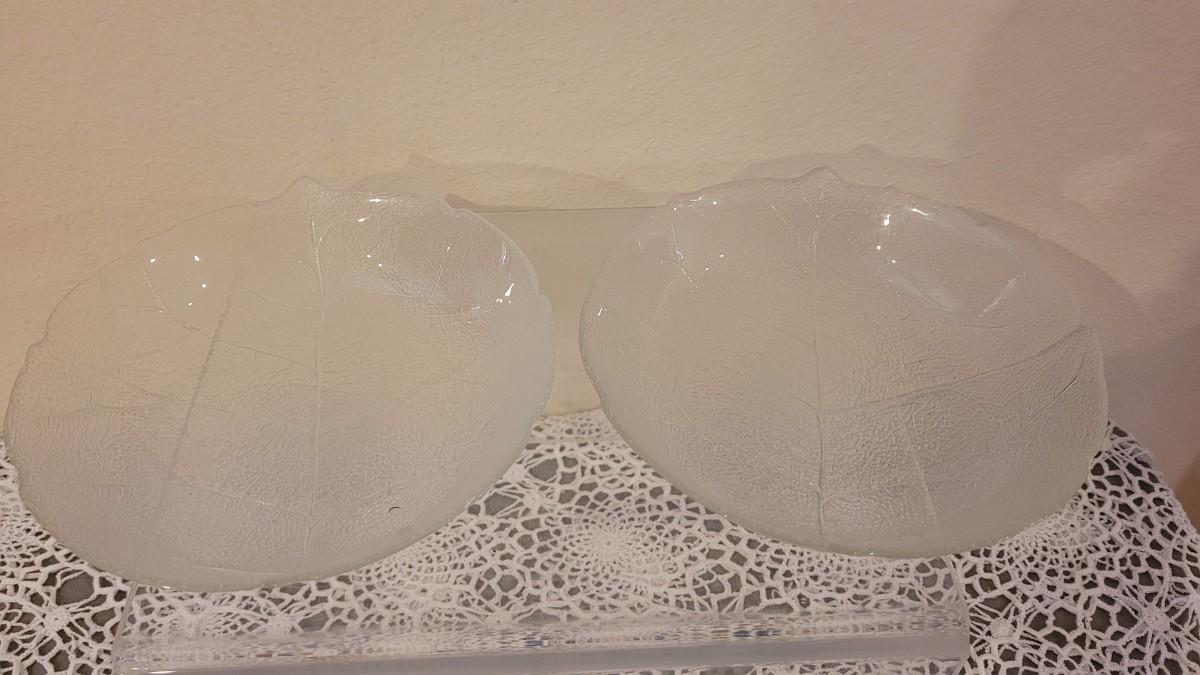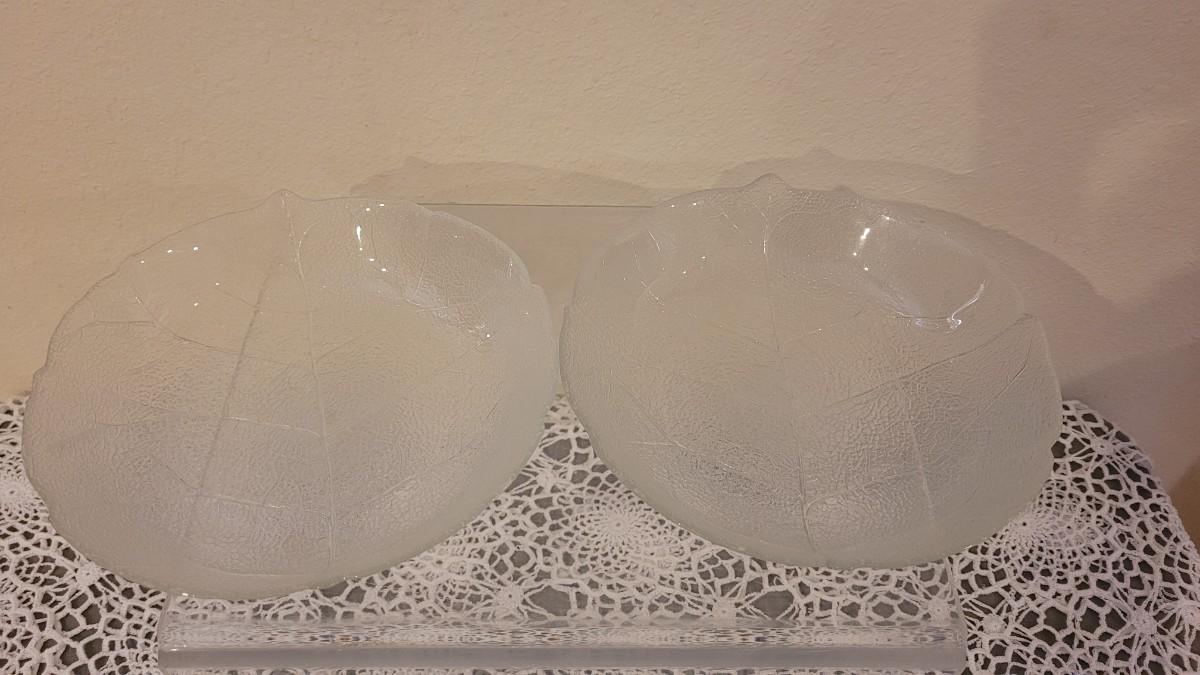 Lot 140: Clear Cabbage Leaf Serving Bowl and 4 individual Bowls