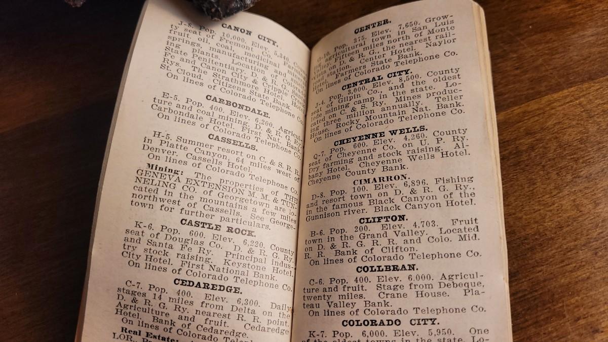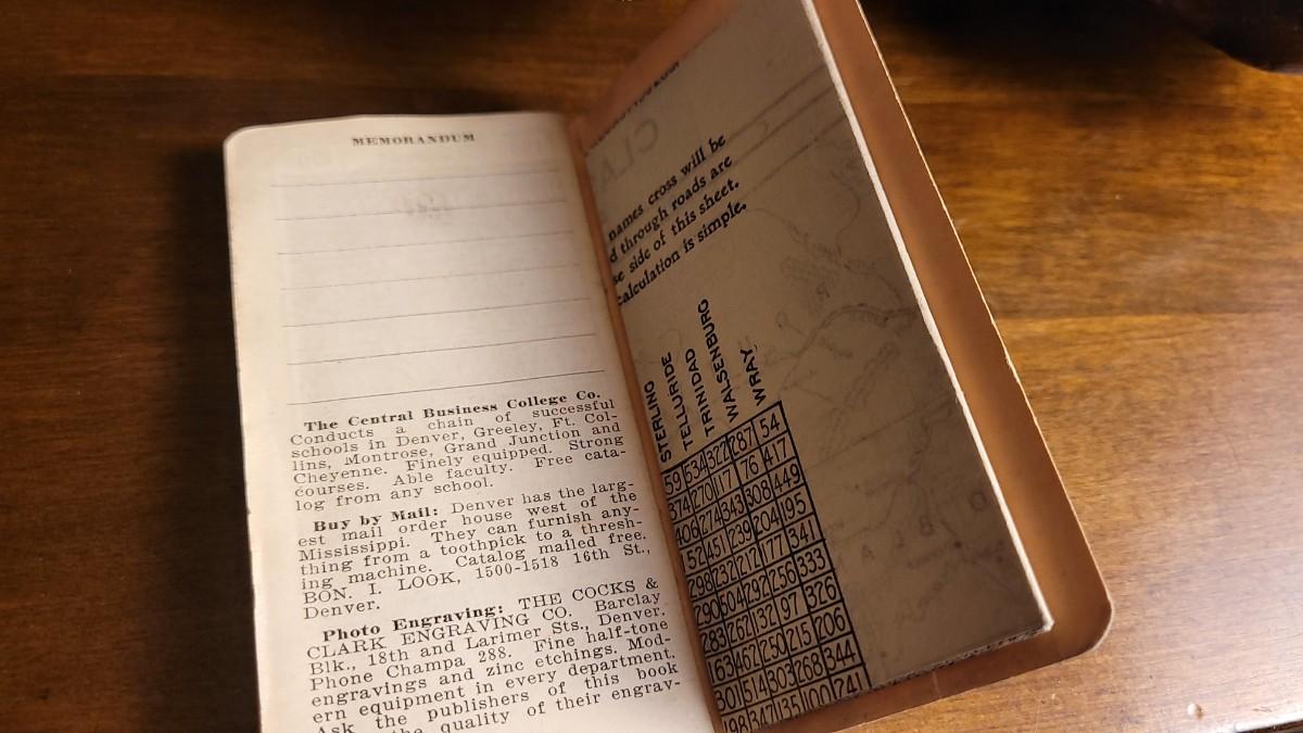 The real showstopper of this lot lies inside this mini book. A full fold-out 1909 MAP of the Extensive Colorado Railroad Line System. The book and map are both in great condition for age. 9 out of 10.