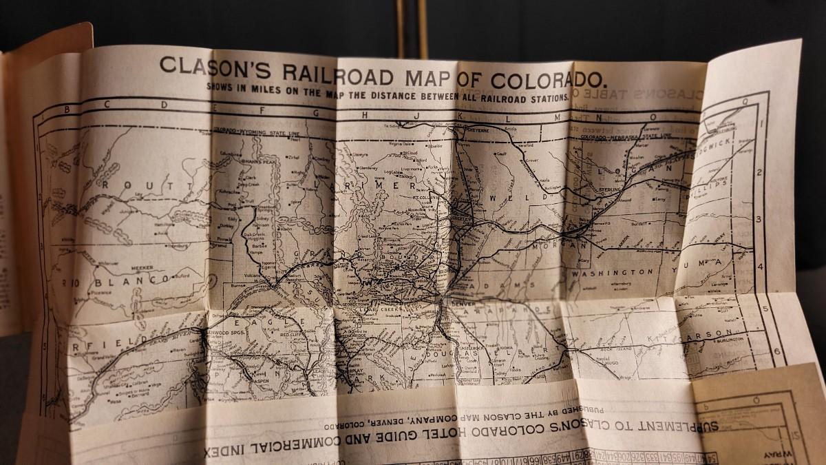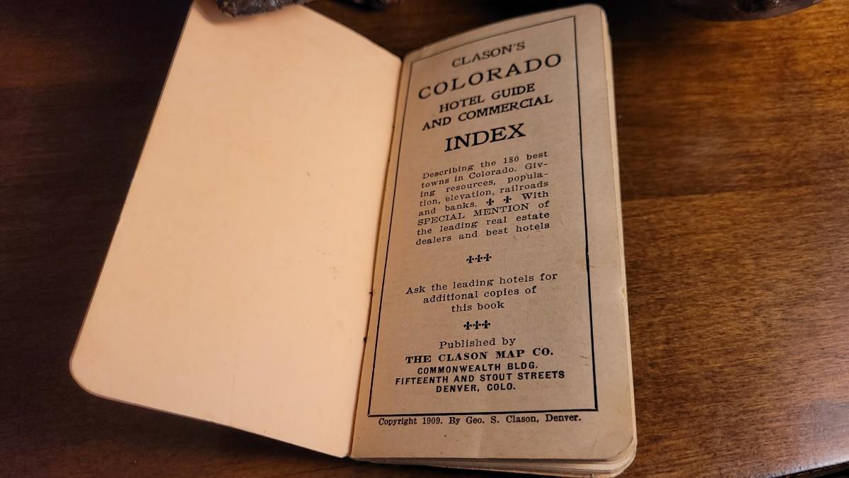 Lot 145: Antique 1909 CLASON'S COLORADO Hotel Guide and Commercial Index w/ Fold Out RAILROAD SYSTEM MAP
