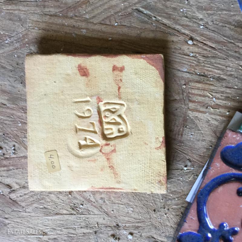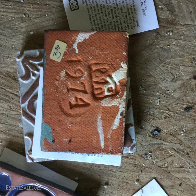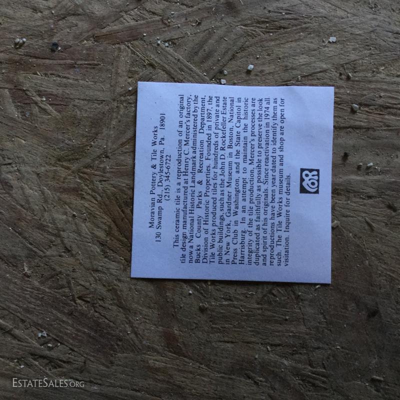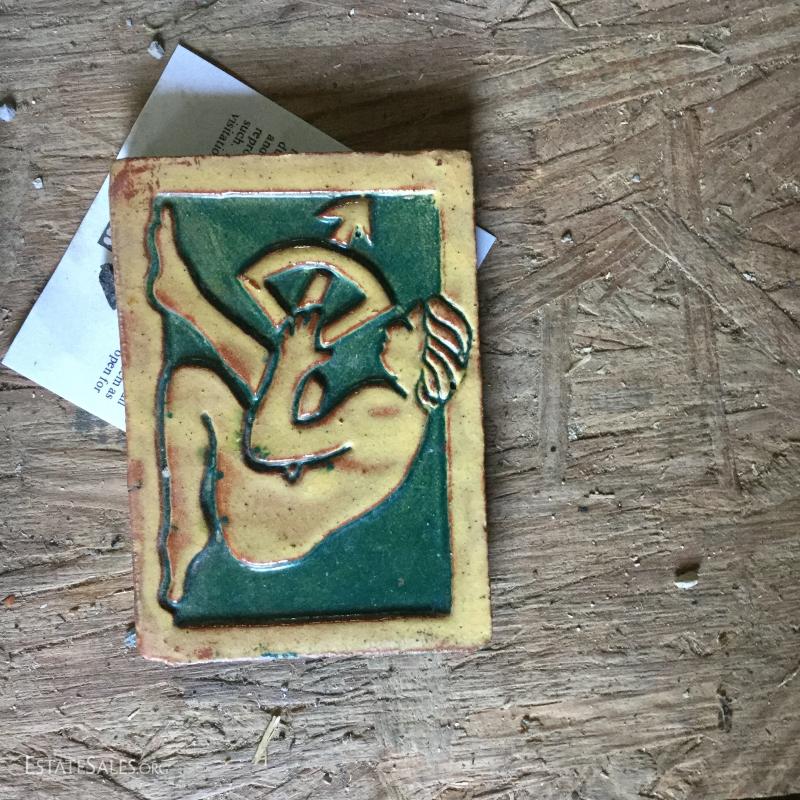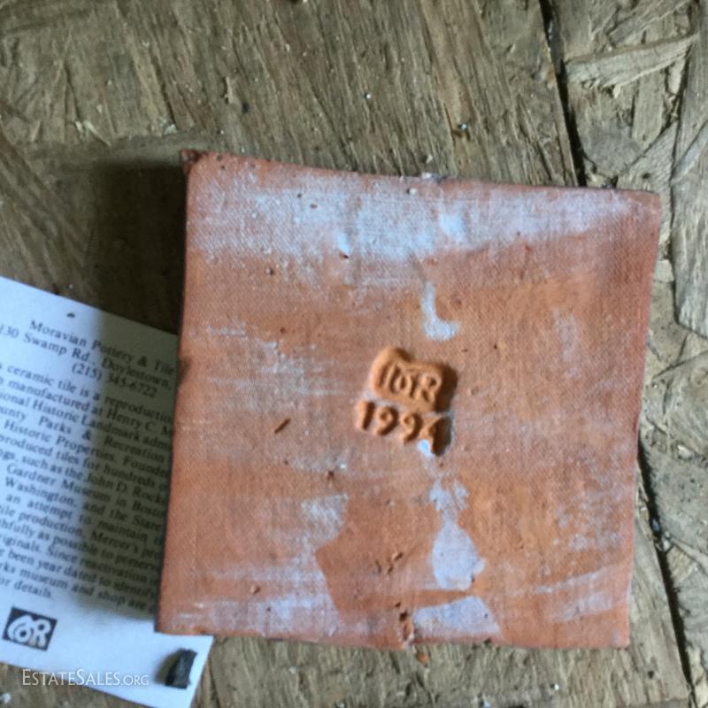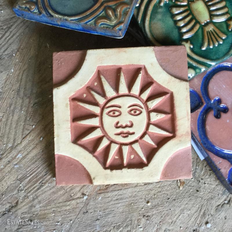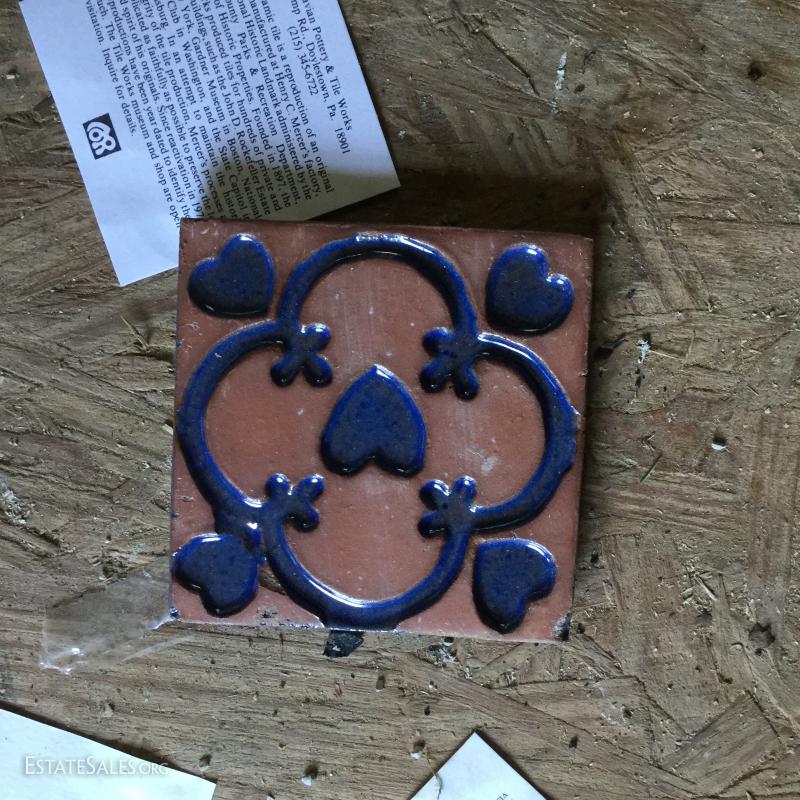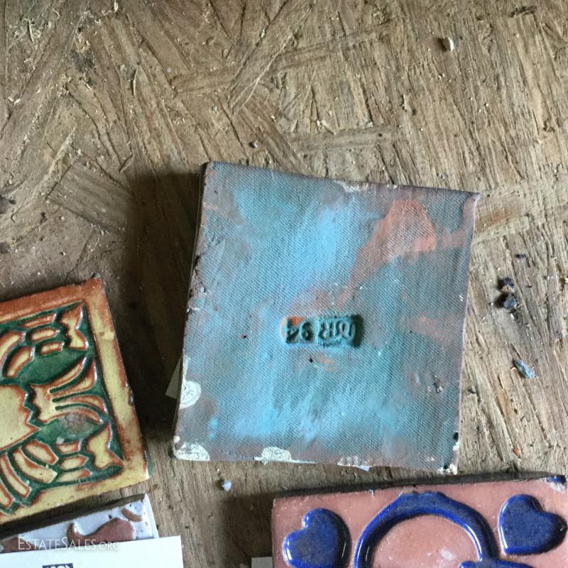 9 colorful reproduction ceramic tiles of originals made at Henry C Mercer's factory in Buck' Co PA. Tiles very in size, largest is 4"x4". This lot is available for shipping or local pick up in Hendersonville, NC.