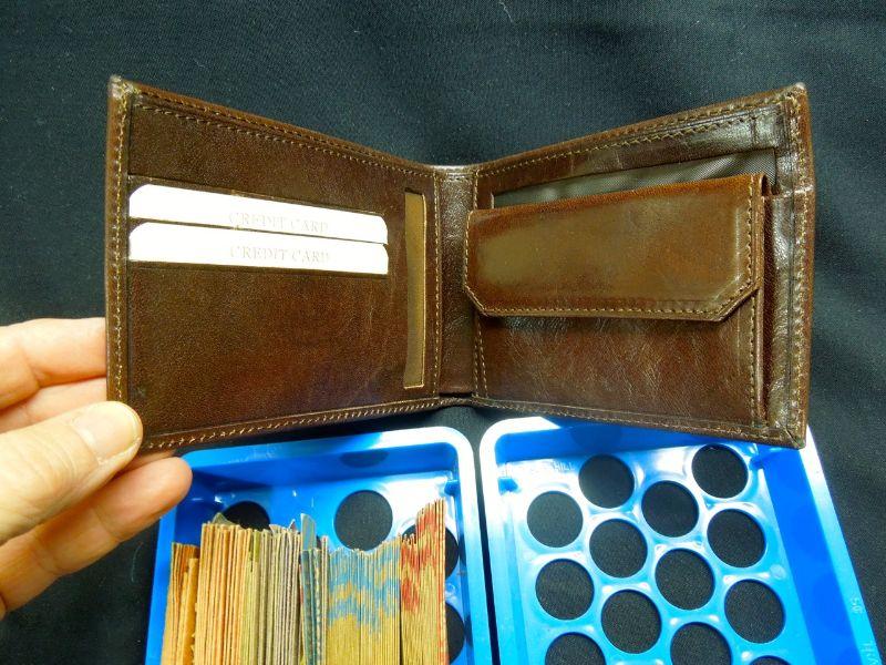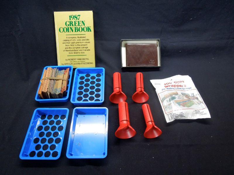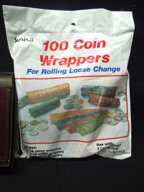 Nice brand new leather wallet, coin sorting sleeves, trays and tubes. Book on coin values.