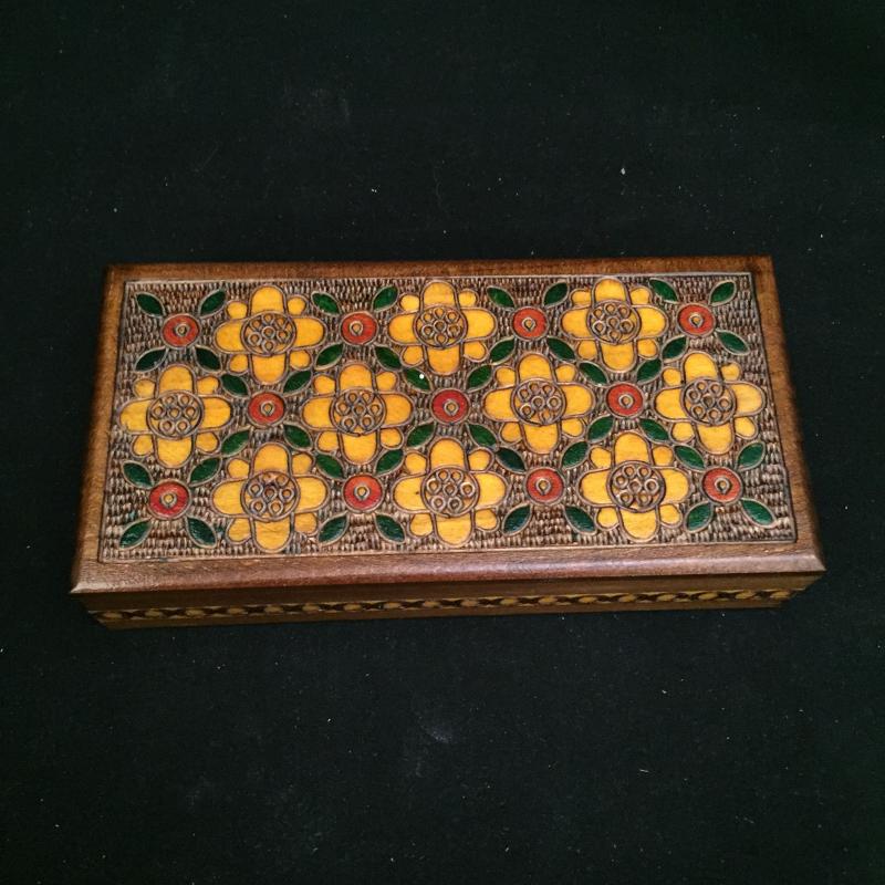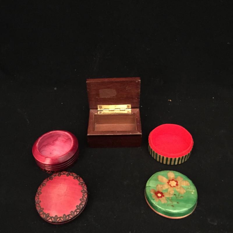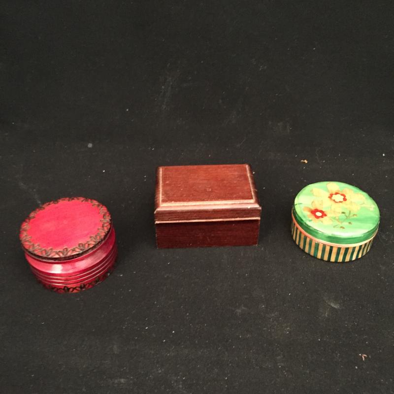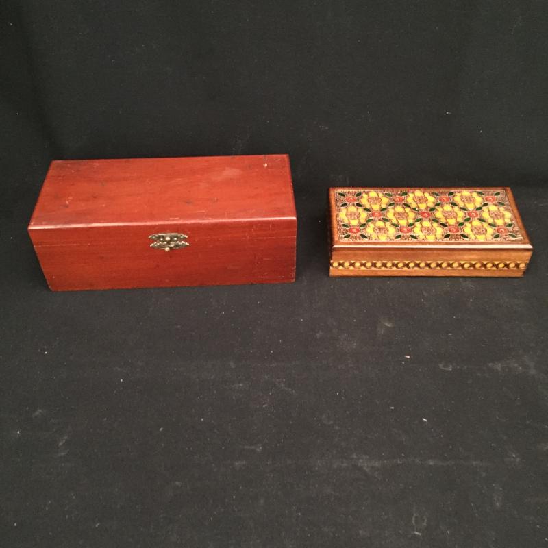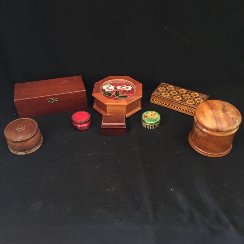 Selection of Decorative Boxes and Jewelry Box. Largest box Measures 3.75” x 8.75” x 3.25”.