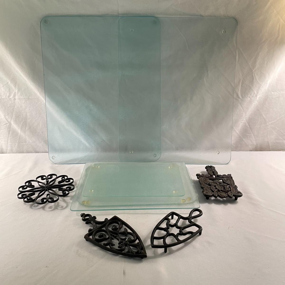 Lot 145 - Iron Trivets & Glass Cutting Boards