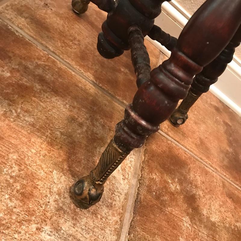 This gorgeous piano chair is perfect for your growing child. Seat turns, raising and lowering as needed. Sturdy, and adorned with gorgeous metal feet, this piece is both practical and a great conversation piece. Approx. 17” x 15” x 35”. See pics. Local pickup only.