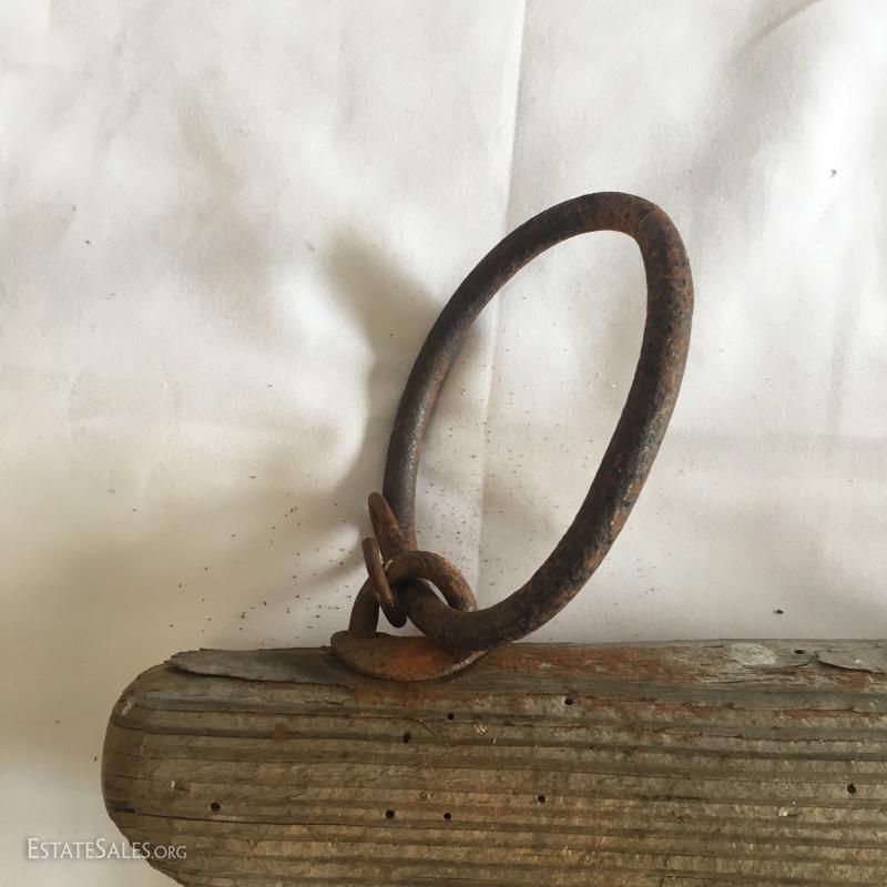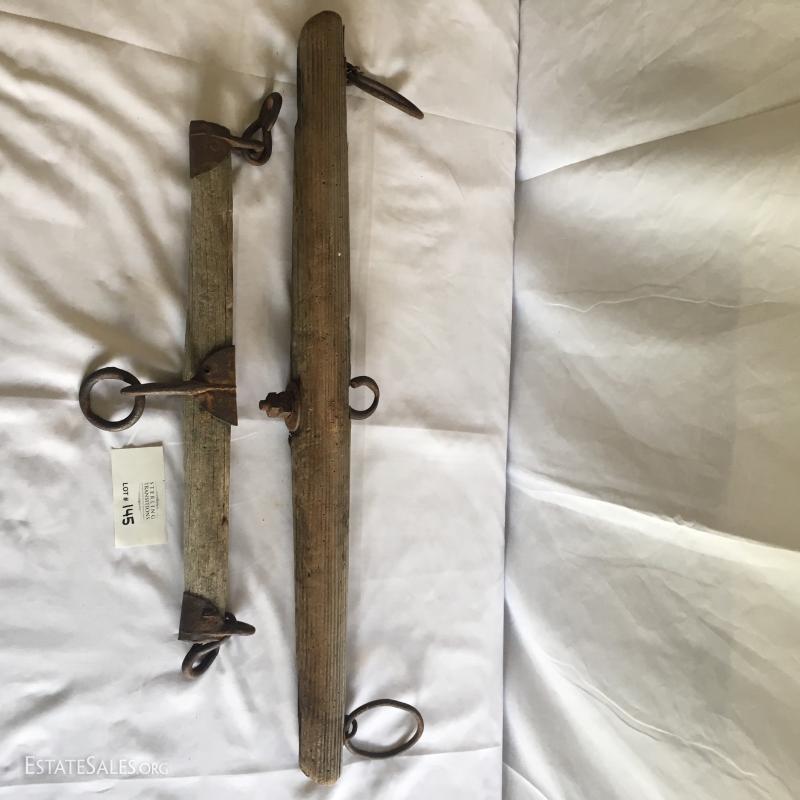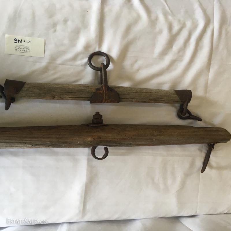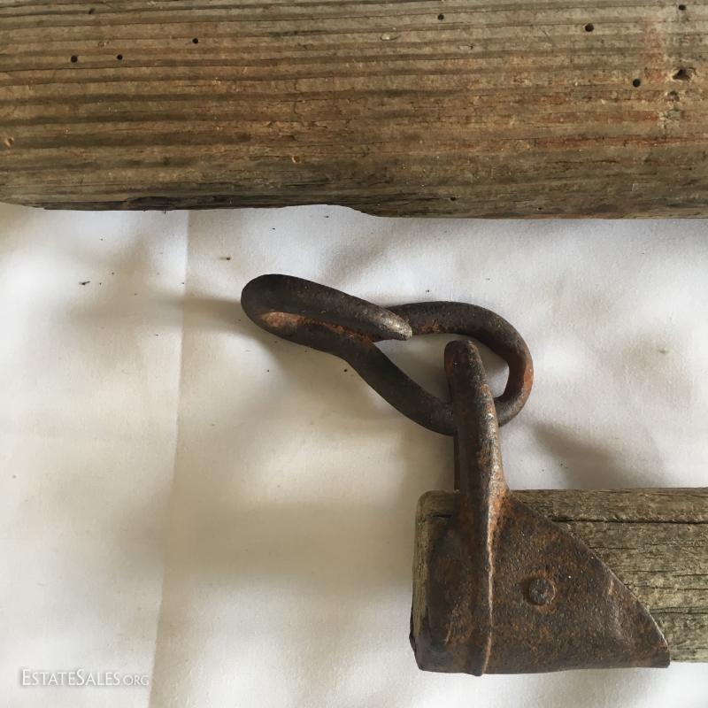 Iron, wood harness yoke, weathered, rustic ox or horse/mule plow.
