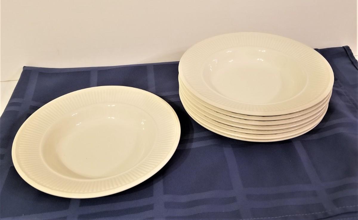 Group of 8 Wedgewood soup/gumbo bowls - classically simple, they go with everything. All in good condition. Each is 8" across.