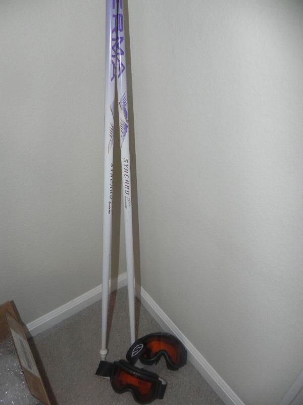 THINSULATE GLOVES (NEW), KERMA POLES, NORDICA AFX BOOTS AND GOGGLE'S
