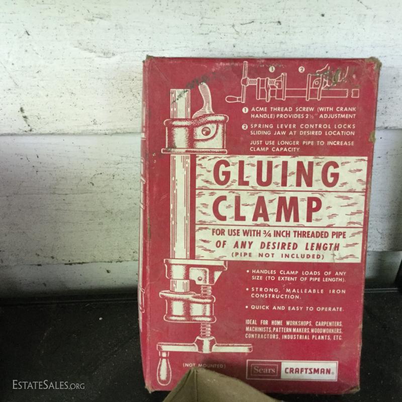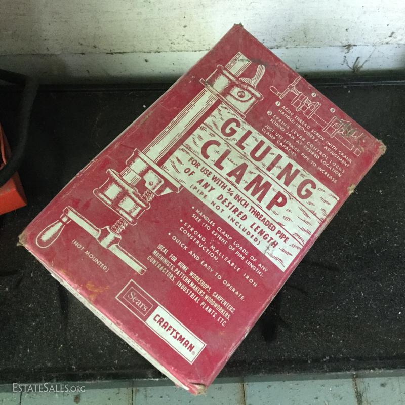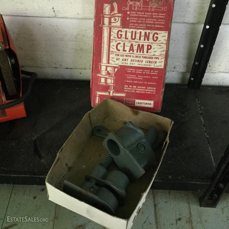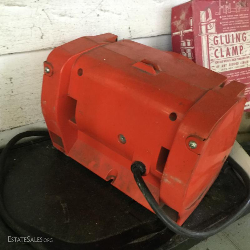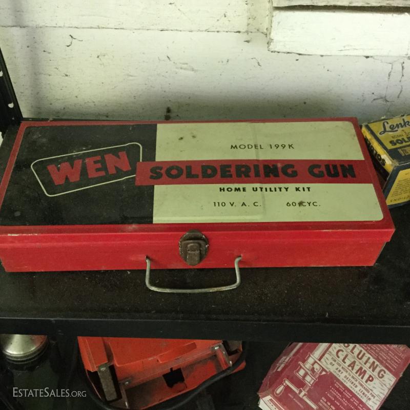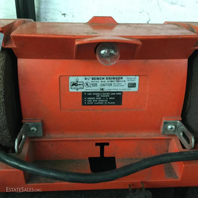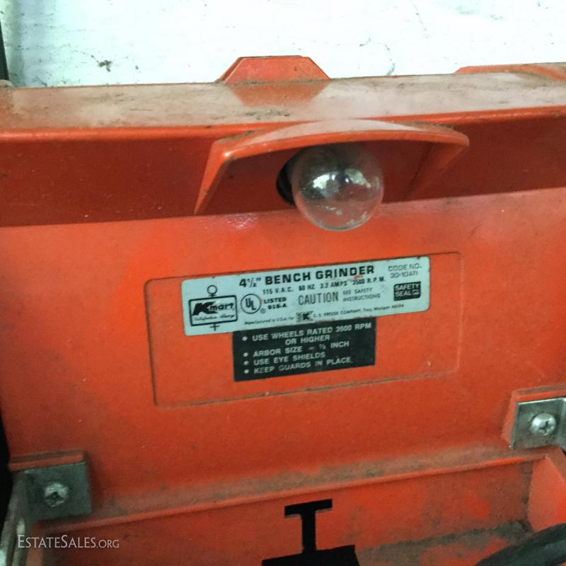 4.5" Bench Grinder and Soldering gun with supplies. Gluing clamp. Homelite XL2 chainsaw that has not been started. Local pick up in Saluda, NC. Shelf not included.
