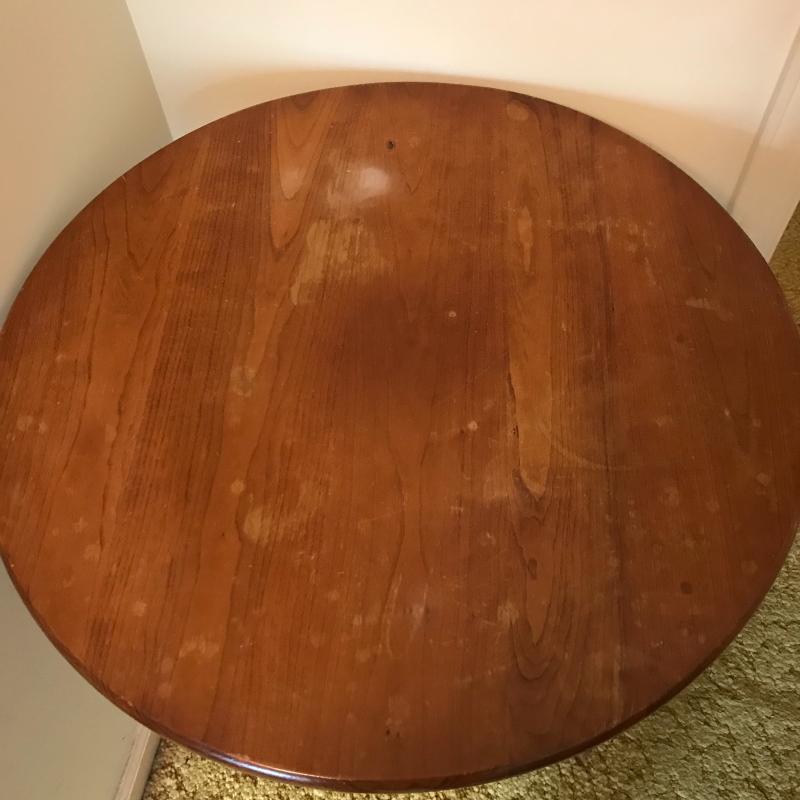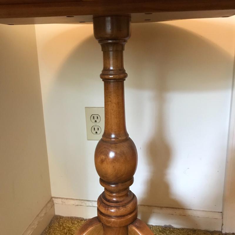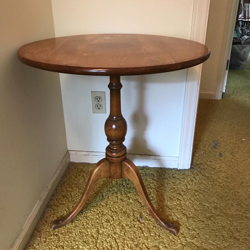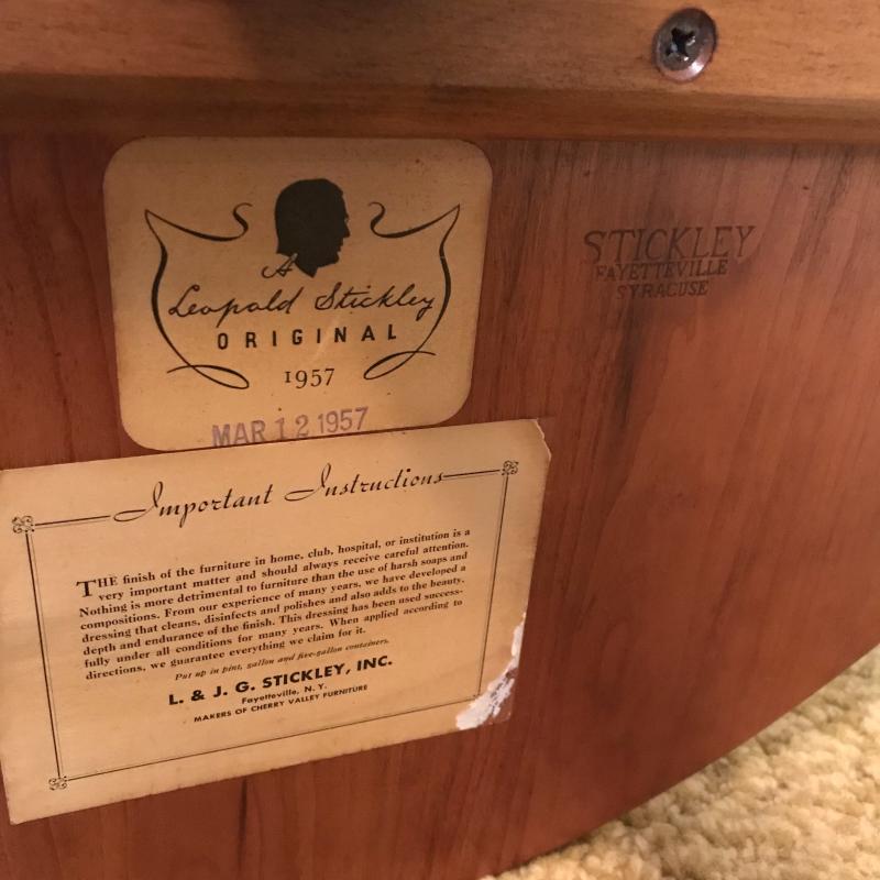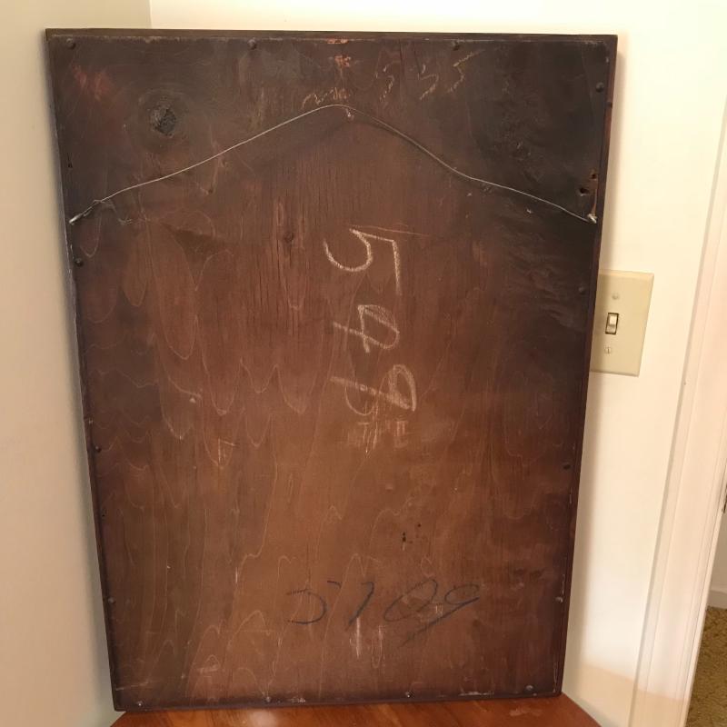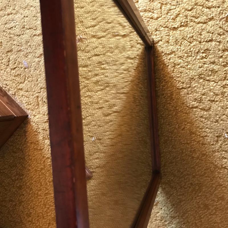 Handsome duo- Leopold Stickley 1957 Side table measures 24”x26.75” is a solid piece with moderate wear to top and legs. Mirror is a stunning cherry color, heavy with nailed backing and very few, hardly noticeable nicks in bottom part of frame. Local pick up only.