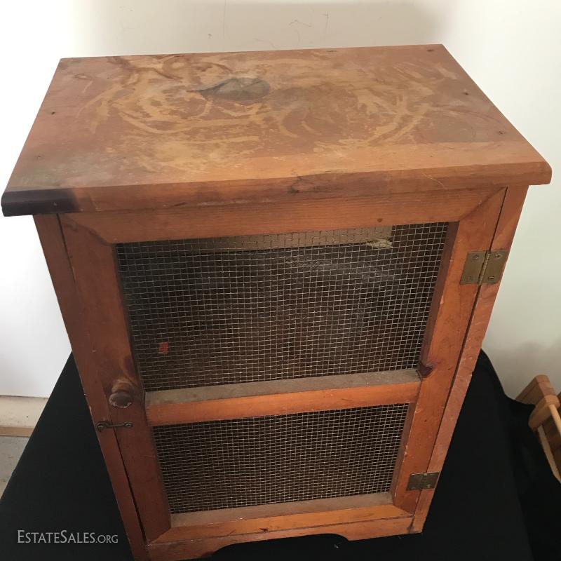 Super cute vintage cabinet with wire doors. Hook closure. Needs some TLC. 17" l x 12"w x 24".h See pictures. No shipping. Local pick up in Mills River, NC.