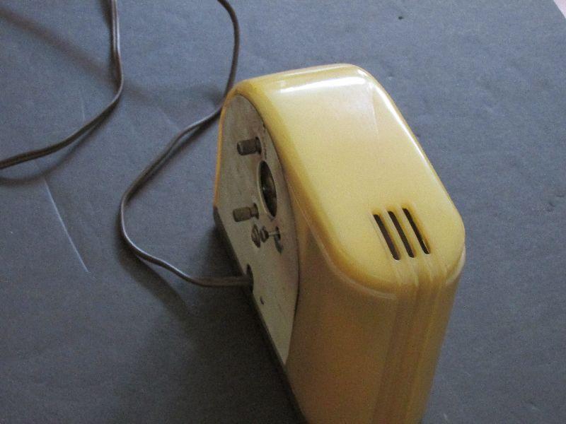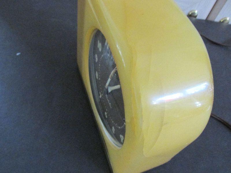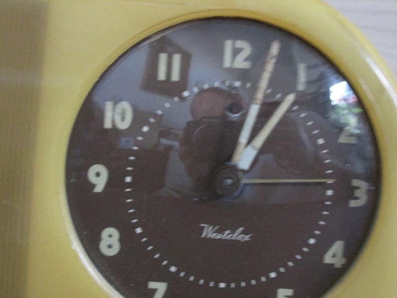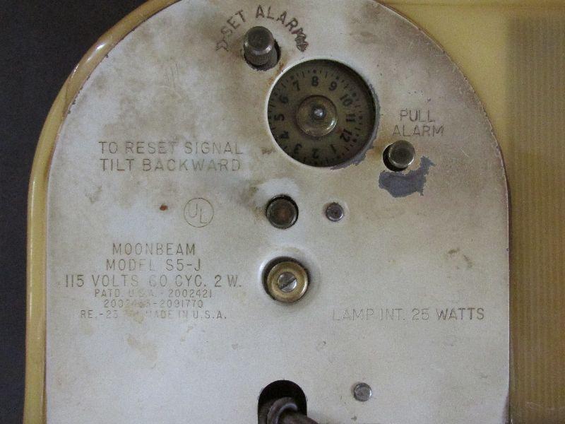 Vintage Westclox Moonbeam Alarm Clock Model S5-J. Large cracks on top, side, and back near dial. Internal light is not working. Clock mechanism and alarm work.