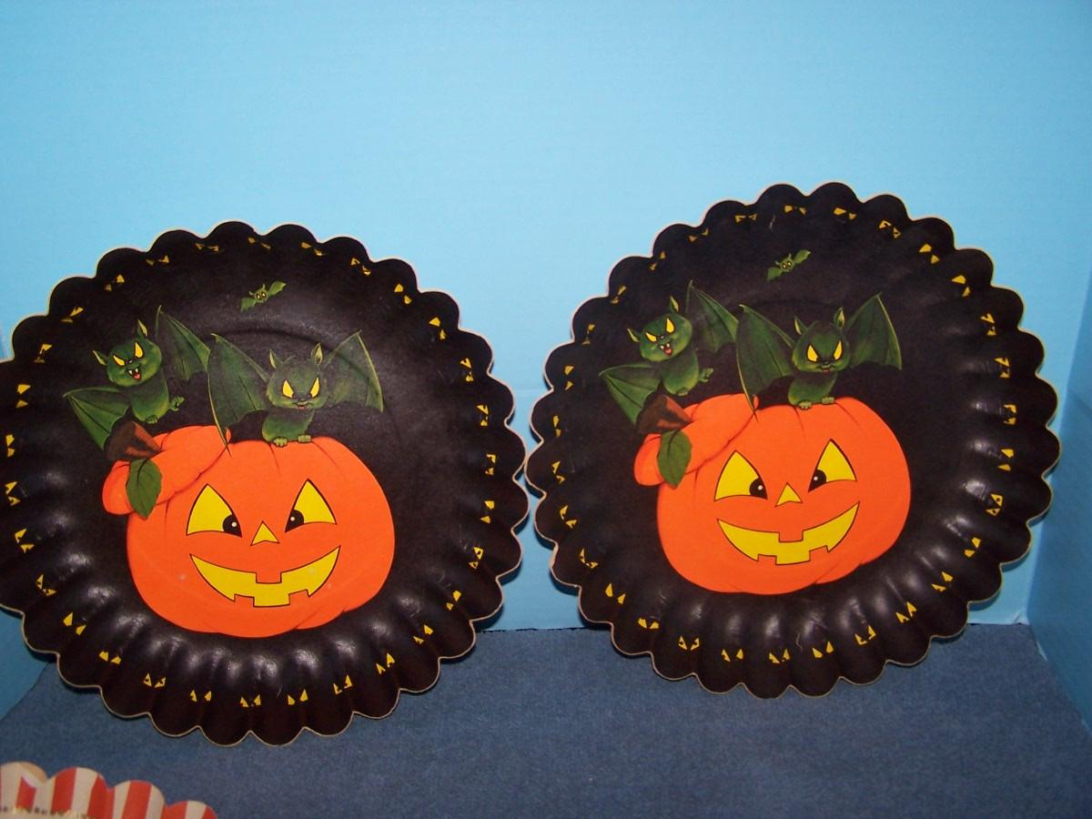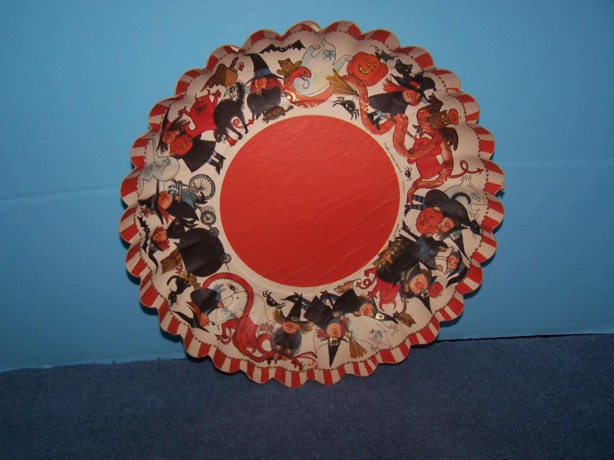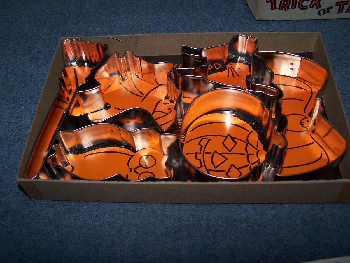 THIS IS SOME WONDERFUL VINTAGE HALLOWEEN ITEMS.. CARDBOARD BOWLS 10 1/2'' ACROSS, 1 IS AN OLD HALLMARK PIECE-MADE IN WESTERN GERMANY.. 1 COOKIE CUTTER IS MISSING... LIGHT WEAR..