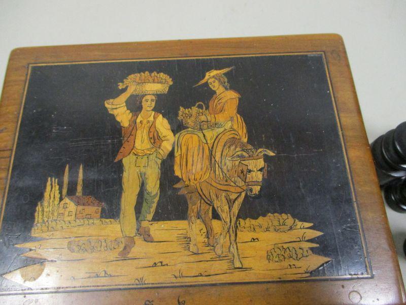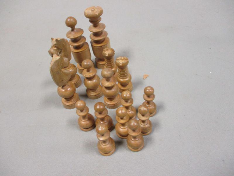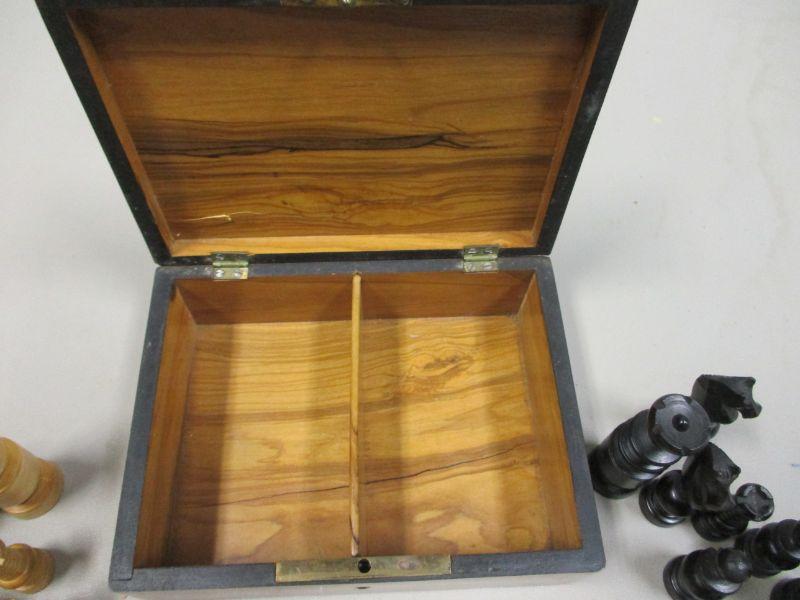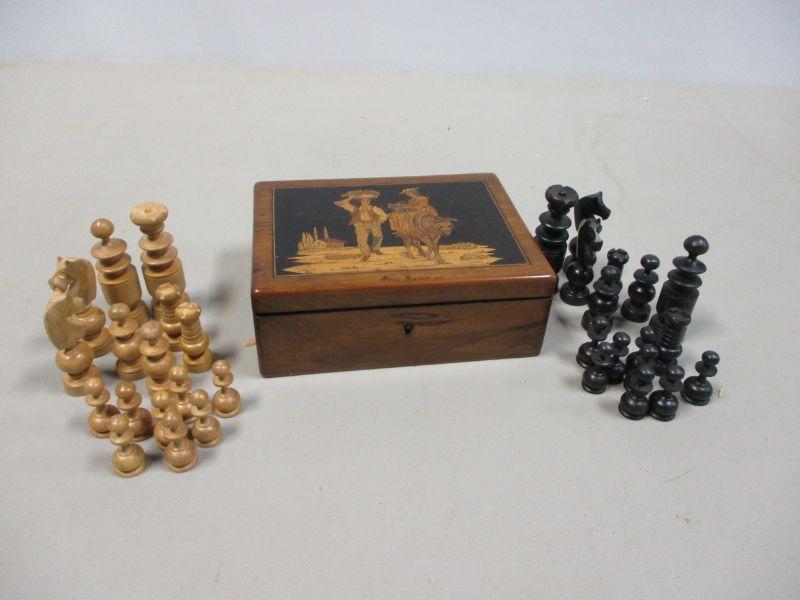 Lot 145 - Wooden Chess Pieces With Decorative Wooden Box