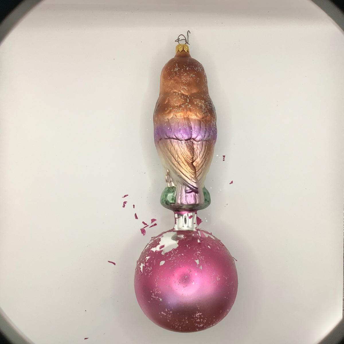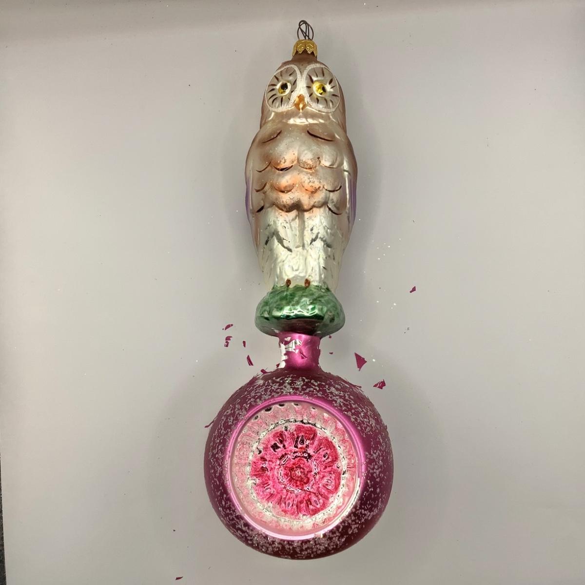 Lot 1454. Vintage Christopher Radko Glass Ornament, Large Owl with Sunburst ( as is )