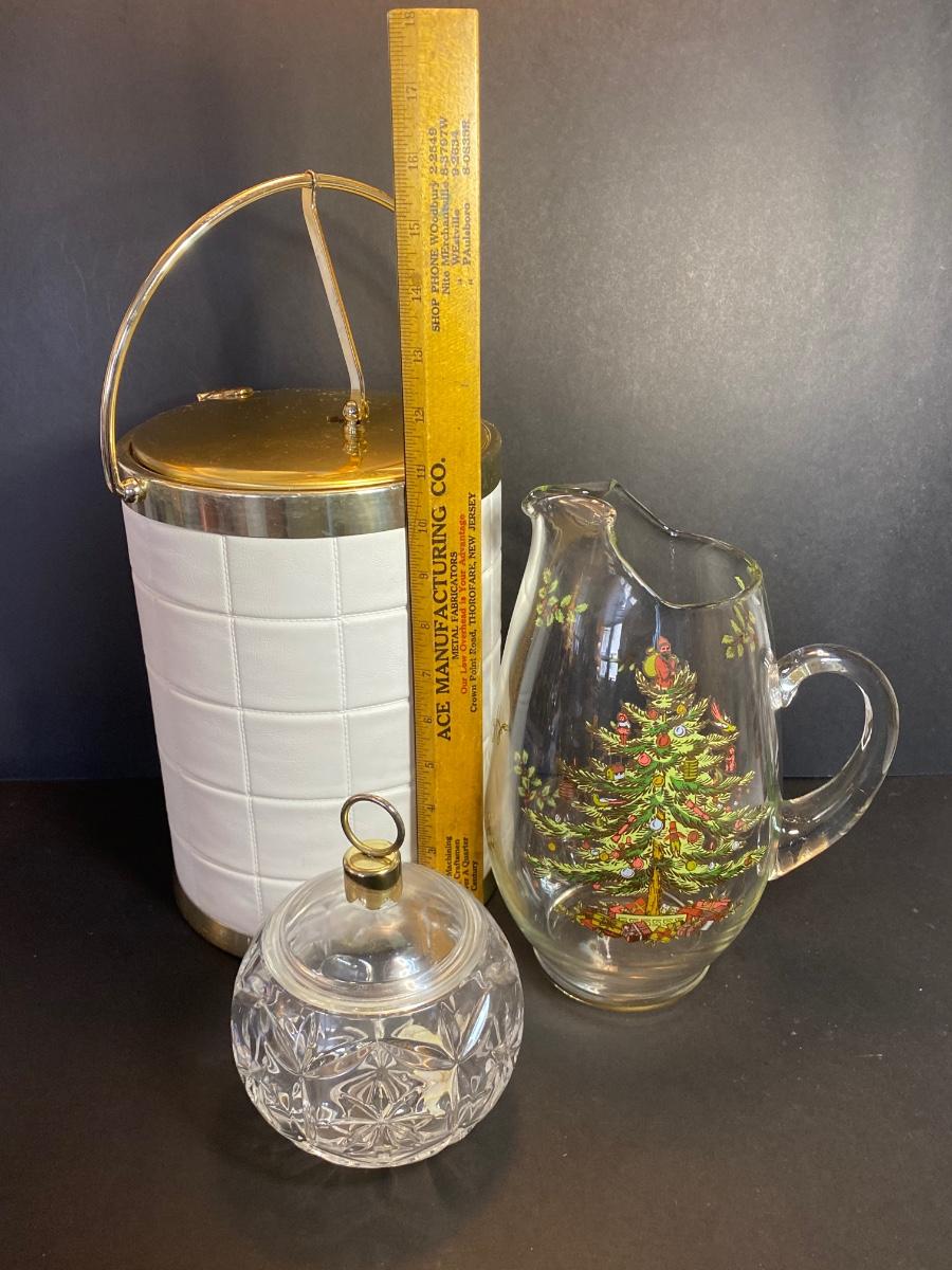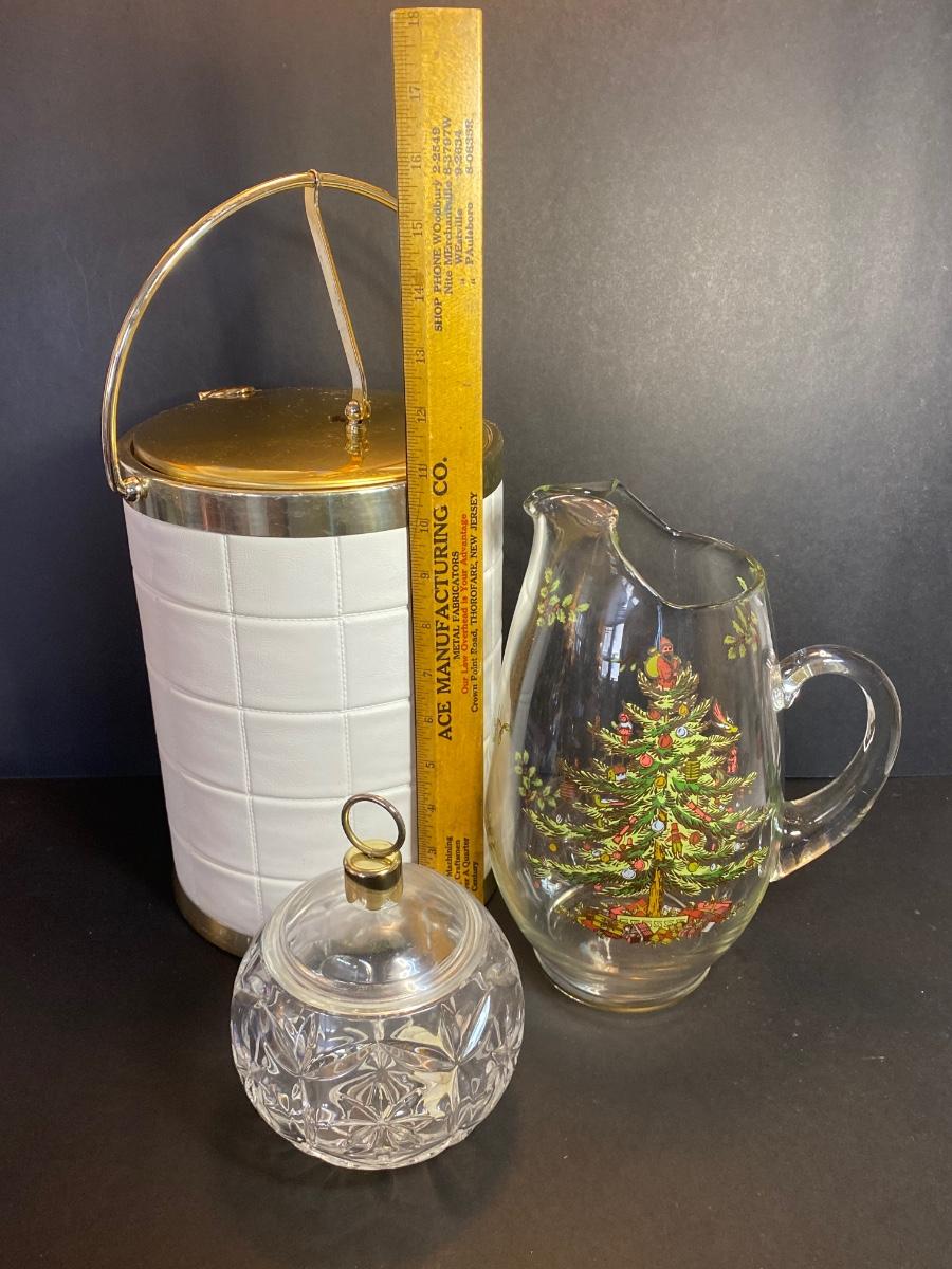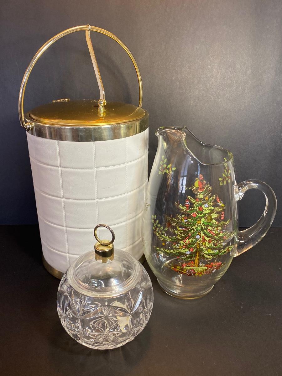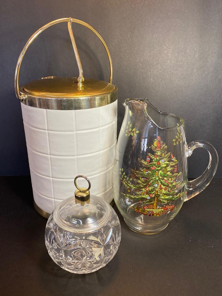 Lot 145C: Vintage Ice Bucket,Bohemian Crystal Ornament Candy Dish & More