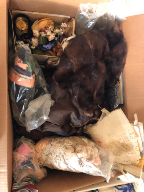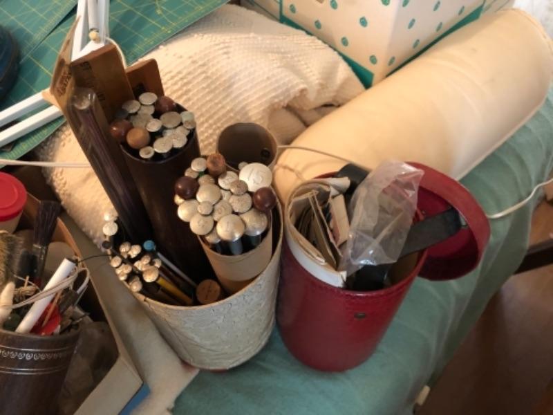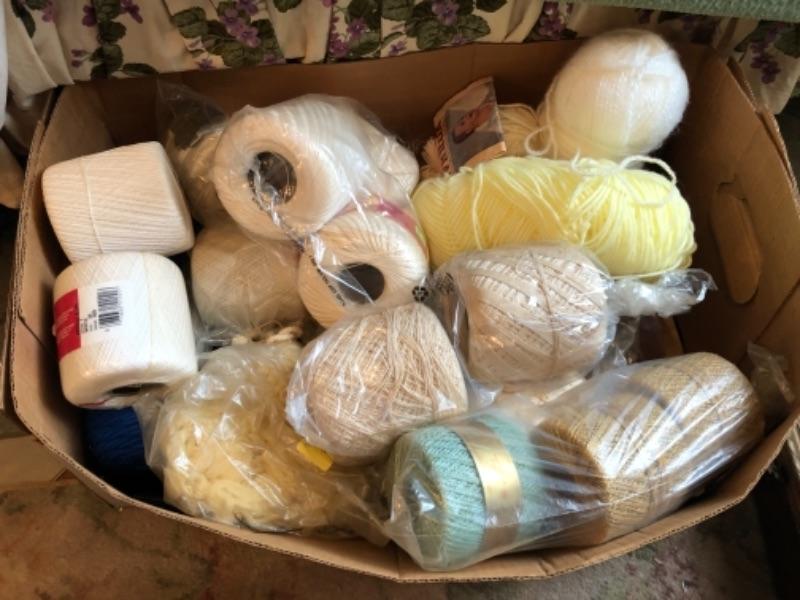 Lot 145F. Huge collection of crafting supplies“”knitting/crochet needles, yarn, embroidery hoops, flowers, floss, buttons, darning eggs, mats, etc.--$125