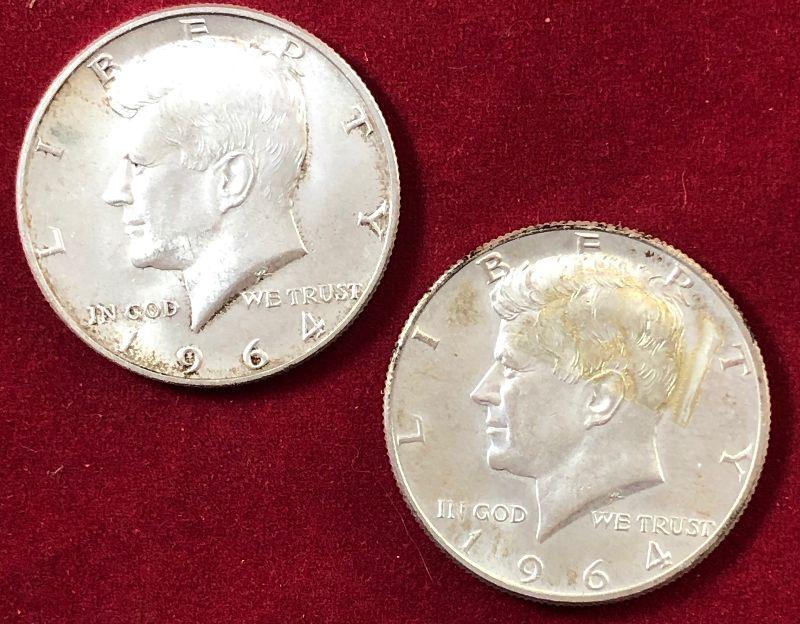 Lot #146 2 Kennedy Silver Half Dollars $ 1964 90%