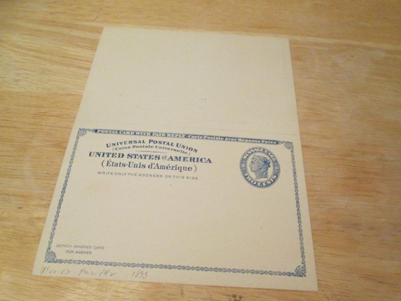 2 Cent Liberty Message Card (1893), 2 Cent Liberty Reply Card (1924) & 3 Cent McKinley Message Card (1926)