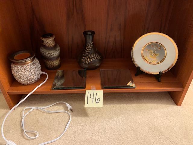Misc. vases, bird plate, display mirrors and oil/wax warmer