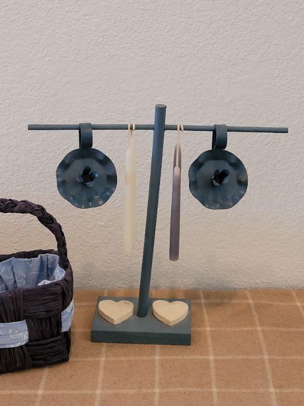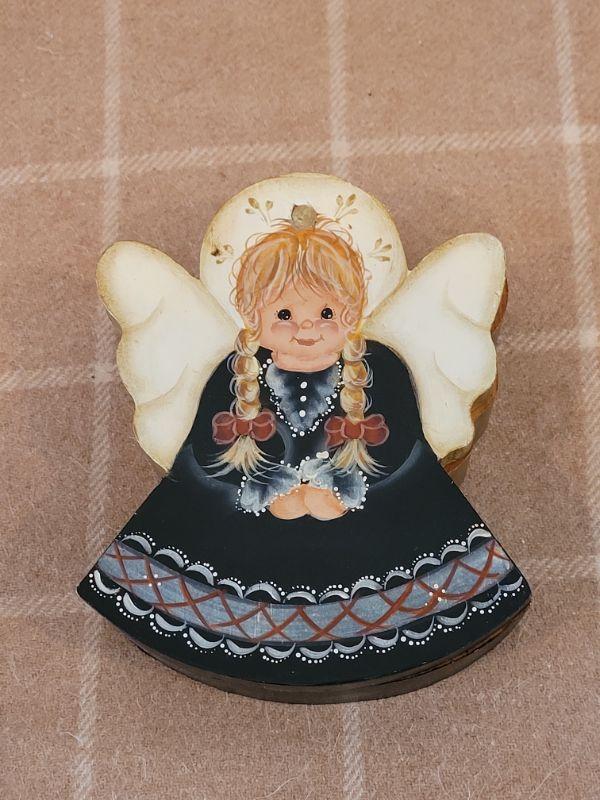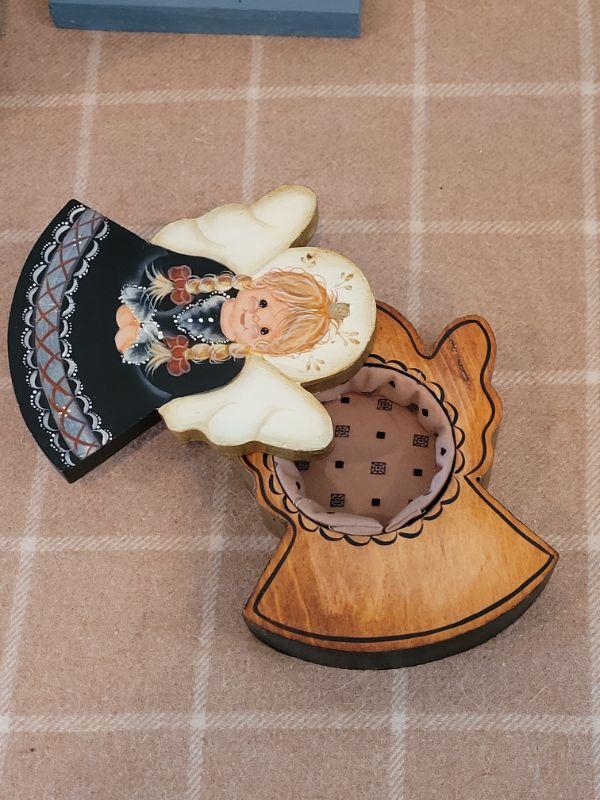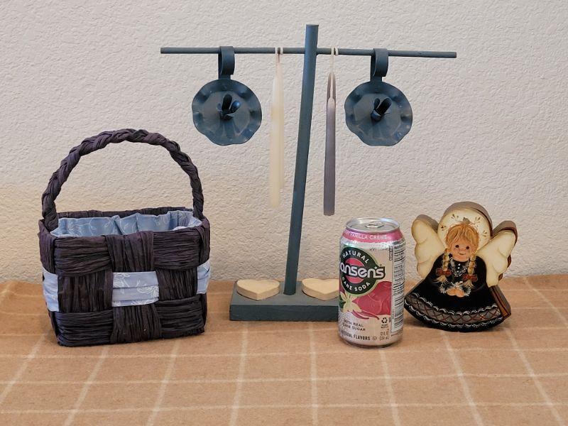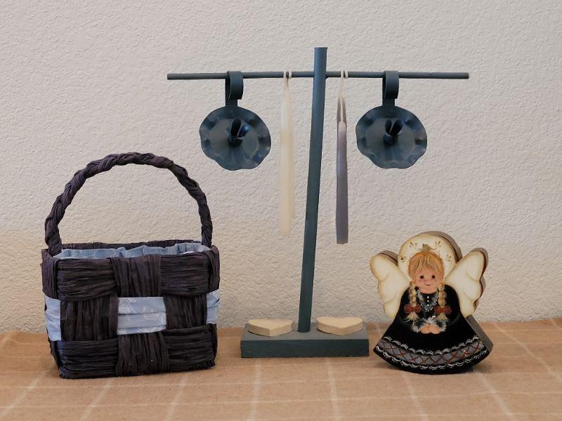 Lot 146: Vintage Basket, Candle Stand with Candles and Holders and Handpainted Angel Trinket Box