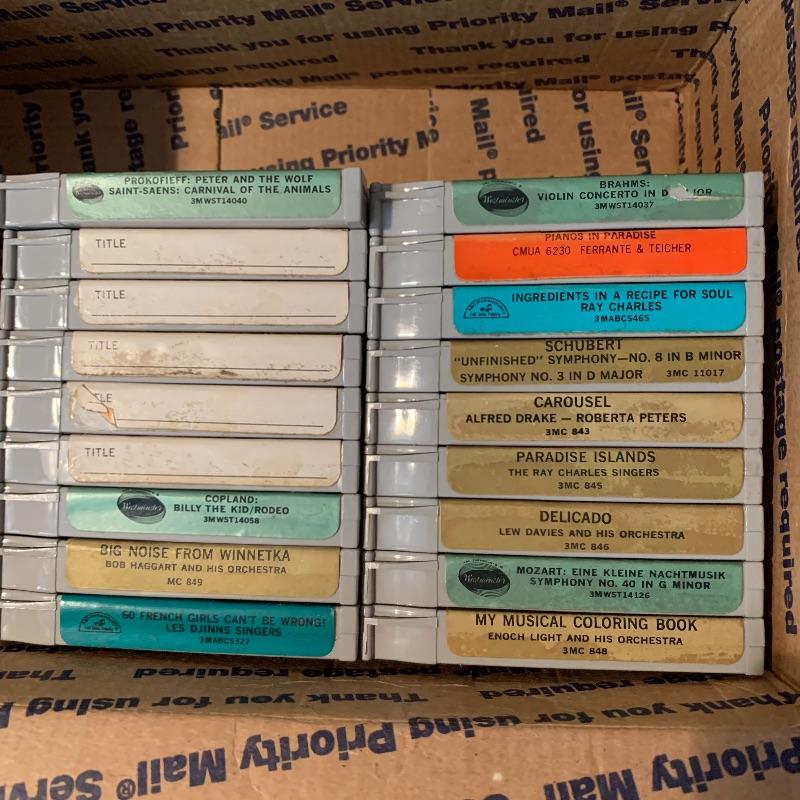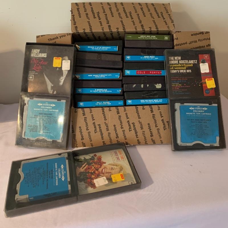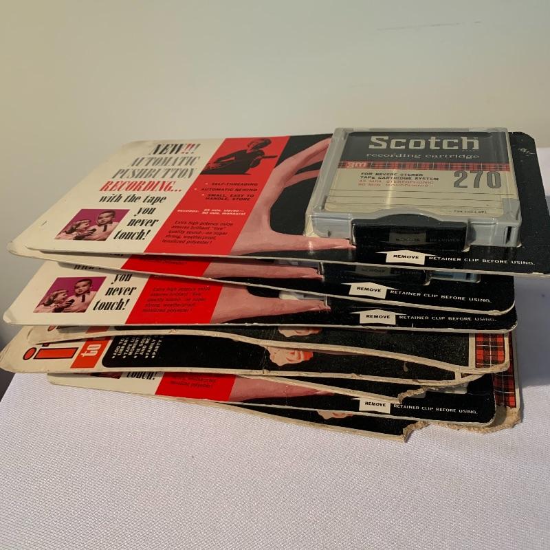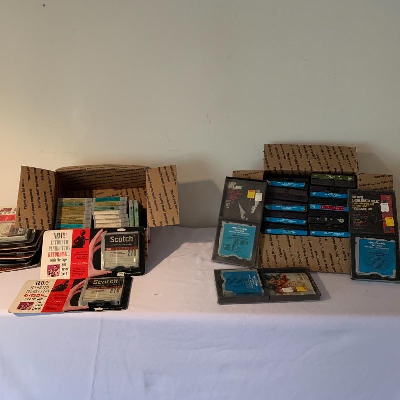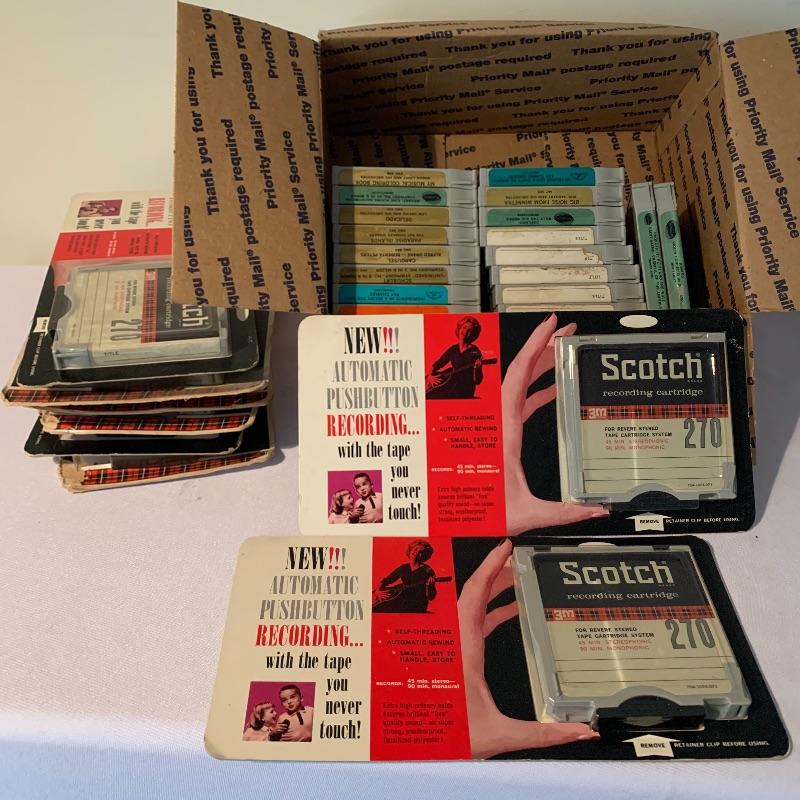 This lot includes 39 magnetic tape cartridges. The cartridges include music tapes, movie soundtrack tapes, and blank cartridges. Most of them are Scotch recording cartridges. Local pick up only.